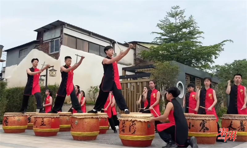 許駙馬府景區的二十四節令鼓表演。( 潮州日報全媒體記者 陳宏文 攝)