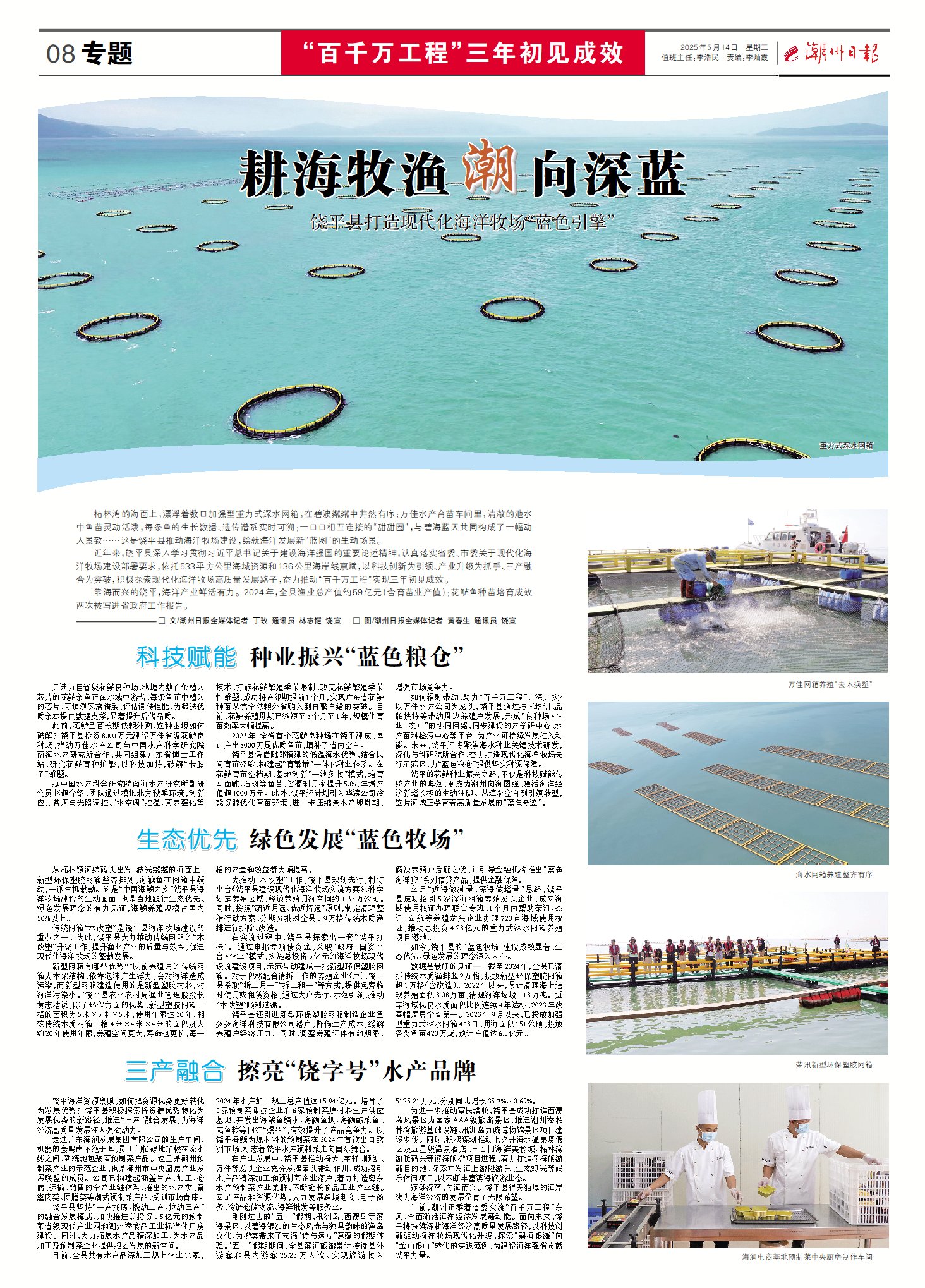 當前,潮州正乘著省委實施“百千萬工程”東風,全面激活海洋經濟發展新動能。面向未來,饒平將持續深耕海洋經濟高質量發展路徑,以科技創新驅動海洋牧場現代化升級,探索“碧海銀灘”向“金山銀山”轉化的實踐范例,為建設海洋強省貢獻饒平力量。
