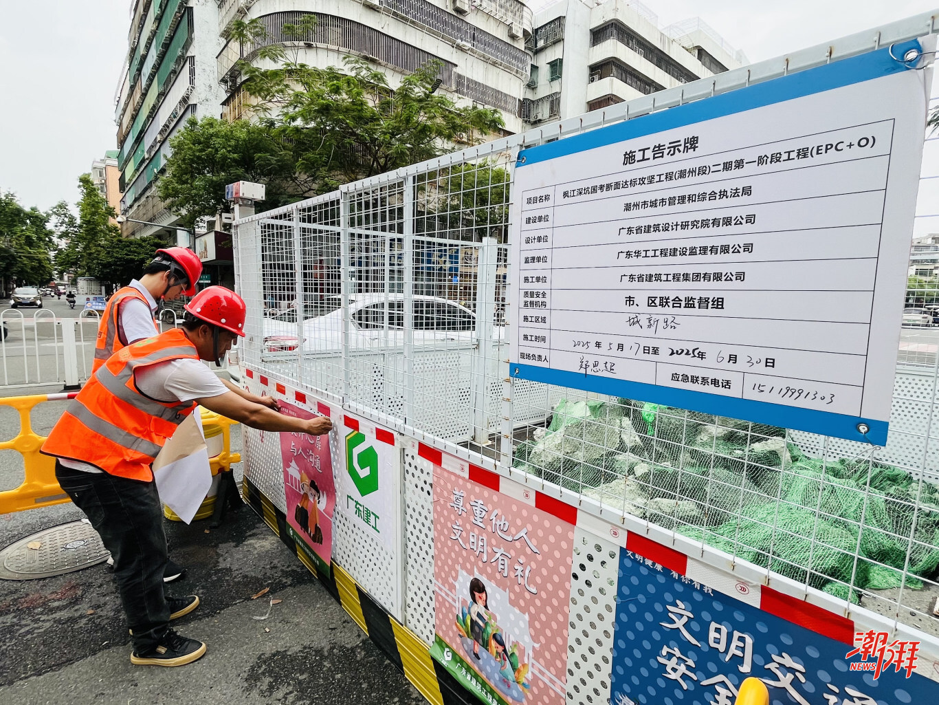 當天,市住建局組織安全監督站及華工監理等相關單位工作人員,對楓江深坑國考斷面達標攻堅工程(潮州段)二期第一階段工程(EPC+0)項目的在建區域施工圍擋開展監督檢查工作。在城新路,監管人員要求施工單位對施工圍擋增設警示燈、反光條及張貼公益廣告;在南較路,監管人員現場要求施工單位進行施工公示牌整改,告知群眾施工工期。