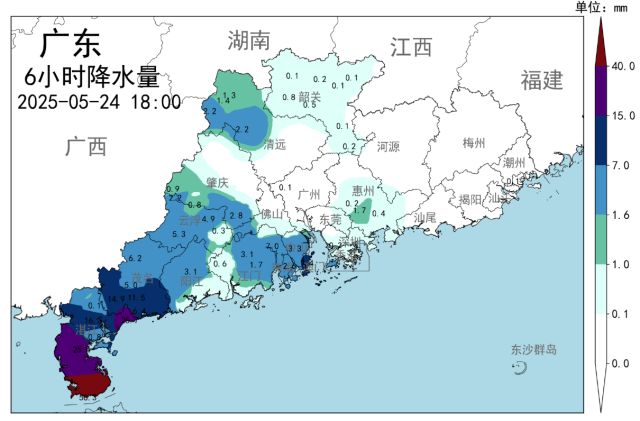 其中茂名高州市荷塘鎮錄得最大雨量105.2毫米