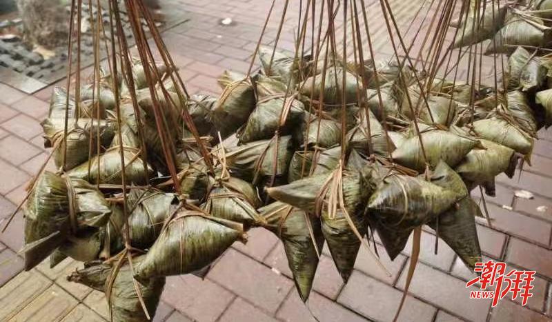 先說頗具地方特色的梔粽,制作起來最是費(fèi)工夫,需采蒲姜燒灰浸水,將糯米放進(jìn)去浸染成琥珀色,然后用竹葉層層疊裹,捆繩要勒得緊實(shí)。將縛好的桅粽放進(jìn)大口的鐵鍋里,把灶膛里柴火燒得噼啪作響,粽香混著蒲姜的草木氣息在蒸騰的熱氣中彌漫。邊添柴火邊加水,保證梔粽浸泡在水中。待煮足七八個(gè)時(shí)辰,將梔粽撈出浸入山泉,褪去熱氣,剝開時(shí)金黃油亮,蘸糖入口,糯米的綿軟與蒲姜的微苦在舌尖纏綿——這不僅是味蕾的記憶,更是古人“以苦味藥食防疫”的智慧結(jié)晶。