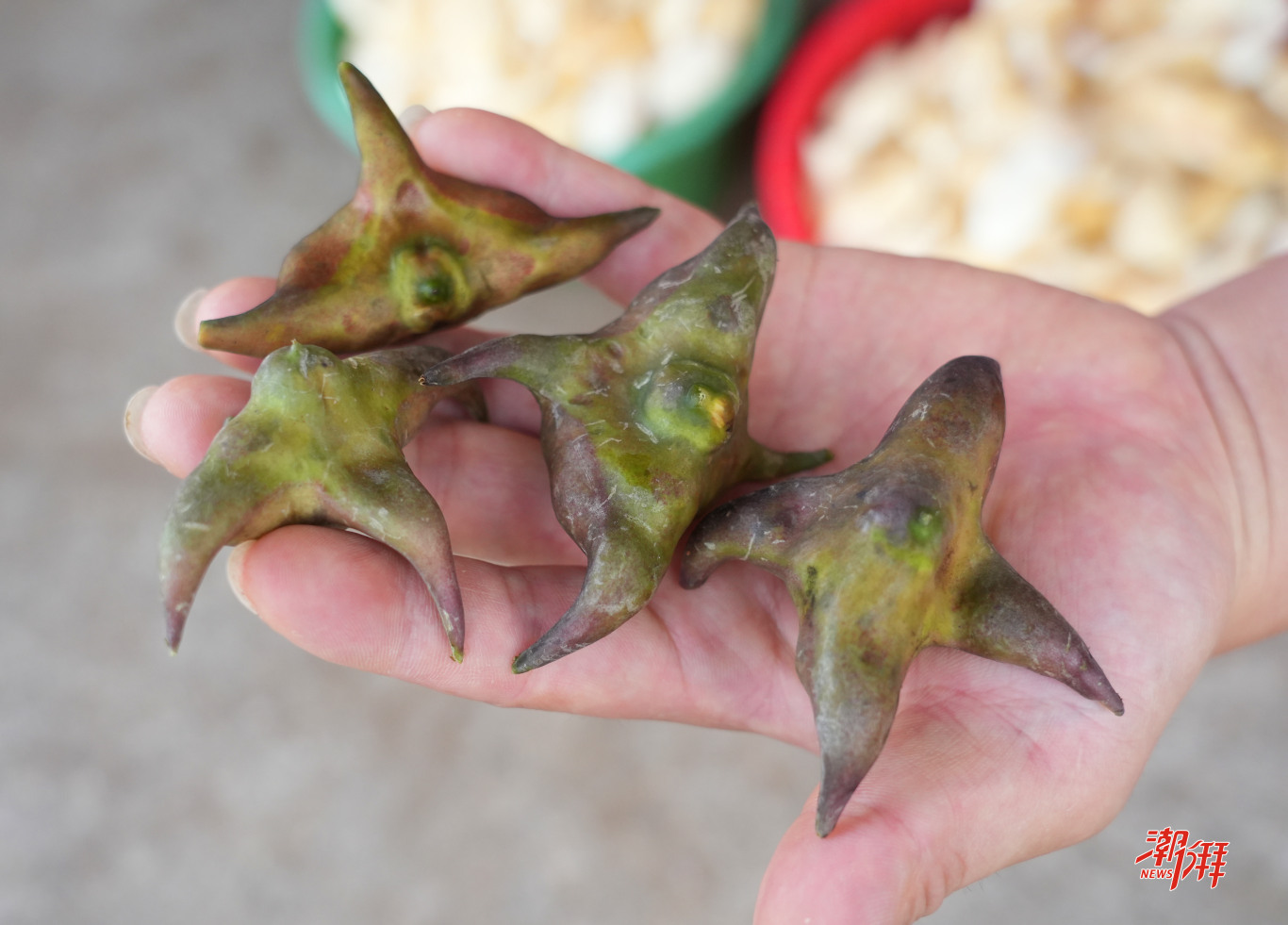 女人們坐在屋前的空地上,手持特制撬刀,從菱角中間撬開,“咔嗒”一聲脆響,青殼綻開,雪白的菱肉被放入竹簍。紅褐里帶青的菱角為青匙品種,粉糯爽脆的口感十分討喜。稚嫩的菱角味道清甜,直接生吃也頗為可口。而種植面積較少的紅菱則是老品種,因其清熱解毒、利尿消腫和美容養顏等功效更顯珍貴,其口感較青匙菱更為香甜。