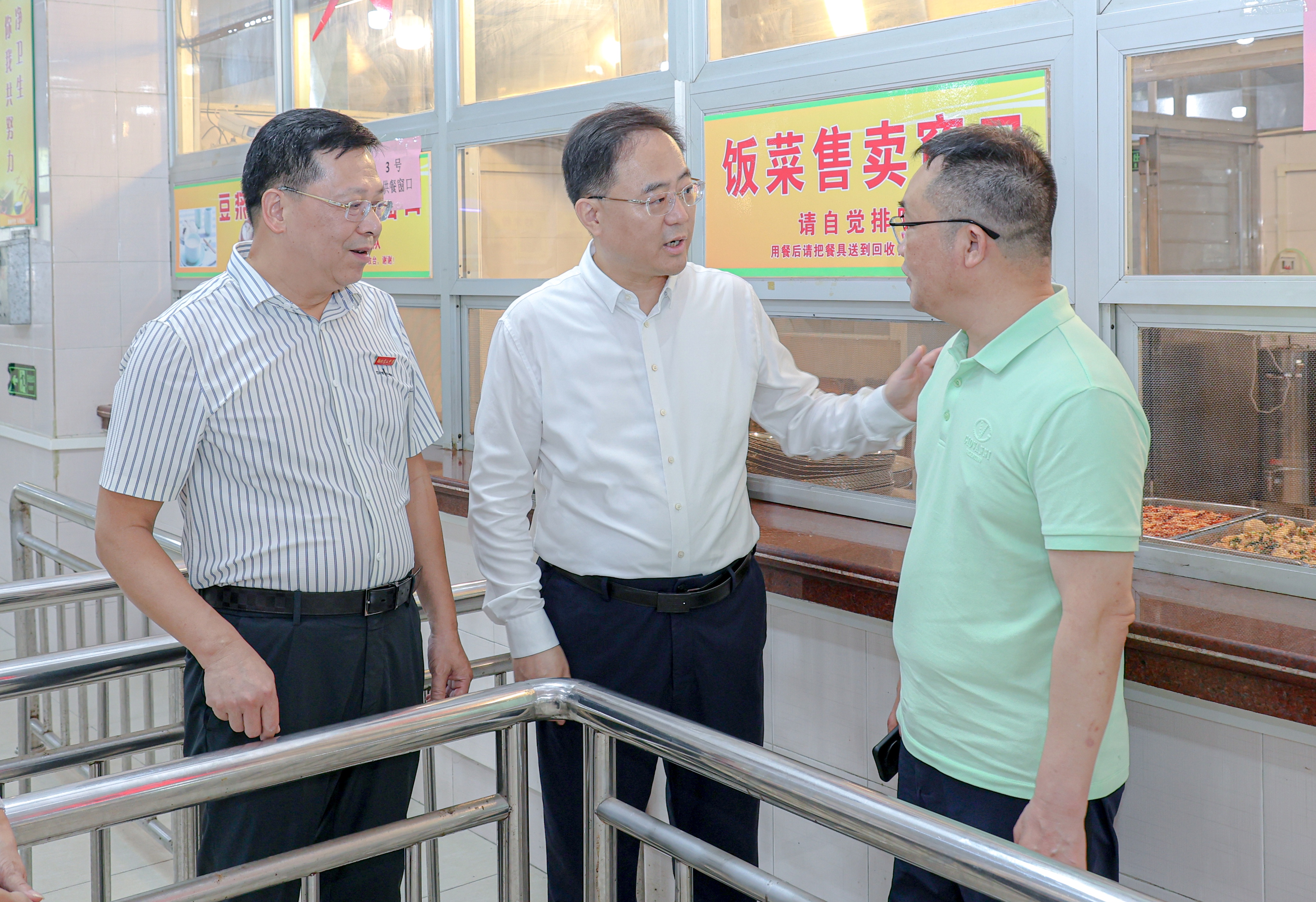 在市金山中學(xué),何曉軍走進(jìn)學(xué)校食堂,實(shí)地檢查食堂衛(wèi)生狀況,了解食材供應(yīng)渠道、加工制作流程、菜品營(yíng)養(yǎng)搭配等情況。何曉軍強(qiáng)調(diào),校園食品安全事關(guān)千家萬(wàn)戶。要聚焦食材采購(gòu)、運(yùn)輸、儲(chǔ)存、烹飪等各環(huán)節(jié),從源頭抓、從細(xì)節(jié)管,保證食材新鮮,讓學(xué)生吃得放心。要增強(qiáng)營(yíng)養(yǎng)健康理念,進(jìn)一步豐富菜品供給、優(yōu)化菜式搭配,多措并舉打造營(yíng)養(yǎng)健康食堂,提升學(xué)生幸福指數(shù)。要規(guī)范食堂經(jīng)營(yíng)管理,加強(qiáng)食堂從業(yè)人員培訓(xùn),落實(shí)“試吃”“陪餐”制度,完善常態(tài)長(zhǎng)效監(jiān)管機(jī)制,堅(jiān)決杜絕食品安全事故發(fā)生。