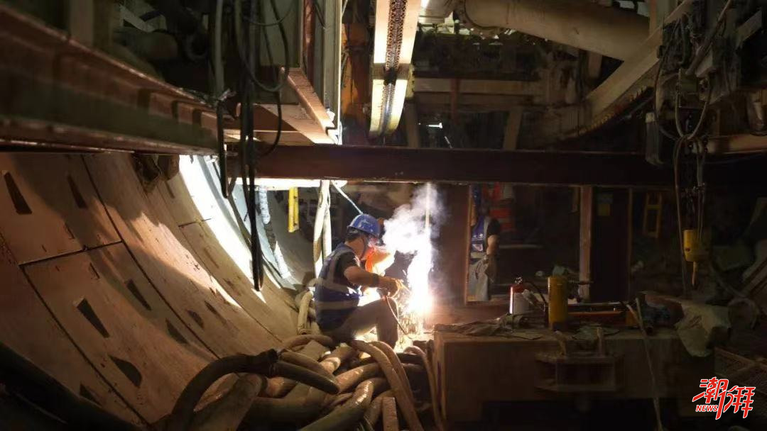 在17號工作井作業區域,幾十名施工人員輪班24小時不停作業,確保該處盾構區間粵東2號和粵東16號盾構機順利接收。據介紹,1標段是全線最大的標段,建設內容包括5座工作井、3條施工支洞、3段盾構隧洞、1條鉆爆隧洞。自2022年11月開工以來,項目部錨定目標、加壓奮進,各工作井如期完成,施工支洞和鉆爆主隧洞整體提前42天完成貫通。
