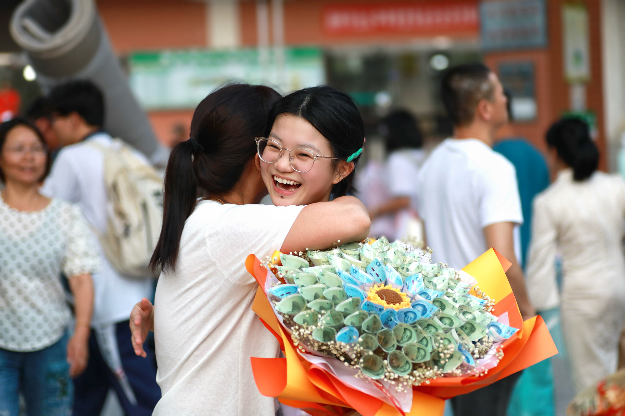 有的考生奔向家長(zhǎng)溫暖的懷抱,聲情并茂地述說(shuō)著自己一路走來(lái)的心路歷程;有的考生則因激動(dòng)而紅了眼眶,與朝夕相伴的同伴緊緊相擁,彼此安慰著這些年為夢(mèng)想拼搏的艱辛與不易;還有的考生迫不及待地掏出手機(jī),向牽掛已久的親人報(bào)喜,分享這份來(lái)之不易的喜悅。