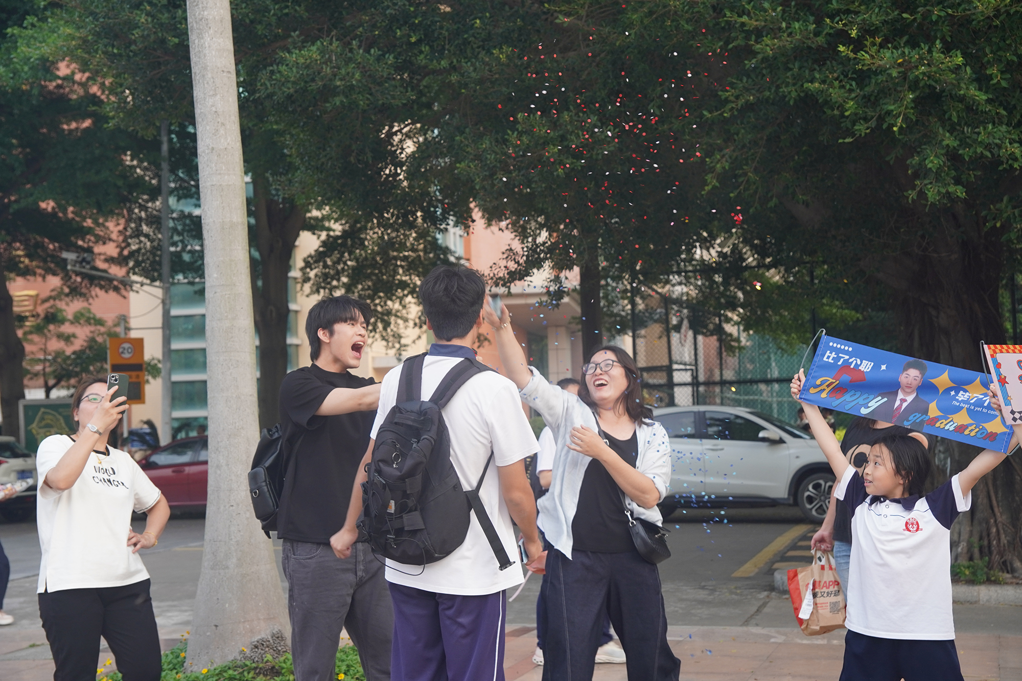 校門(mén)口瞬間化作了歡樂(lè)與感動(dòng)的海洋,夕陽(yáng)的余暉透過(guò)樹(shù)葉的縫隙,在他們身上灑下細(xì)碎而溫暖的光斑,仿佛是命運(yùn)對(duì)他們努力的認(rèn)可與祝福,引領(lǐng)著他們邁向人生的下一個(gè)嶄新階段。