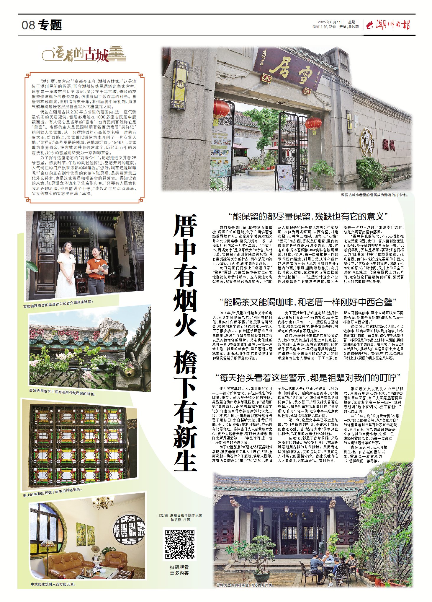張慶春父女以敬畏之心守護祖宅,用創新思維活態傳承,當咖啡香漫過百年花窗,當工夫茶氤氳著南洋地磚,這座老宅在一呼一吸間,延續著潮州“厝中有煙火,檐下有新生”的活態基因。