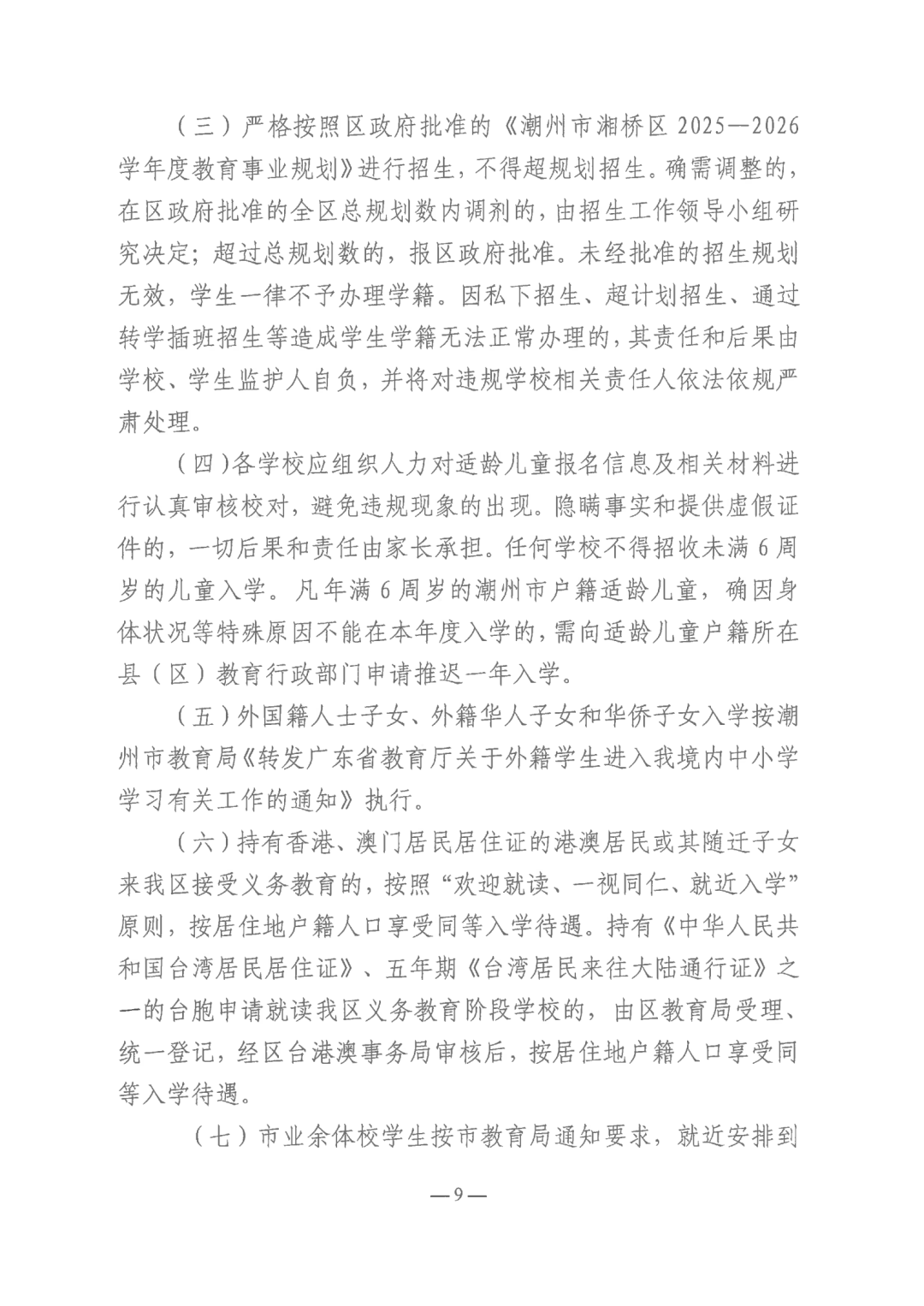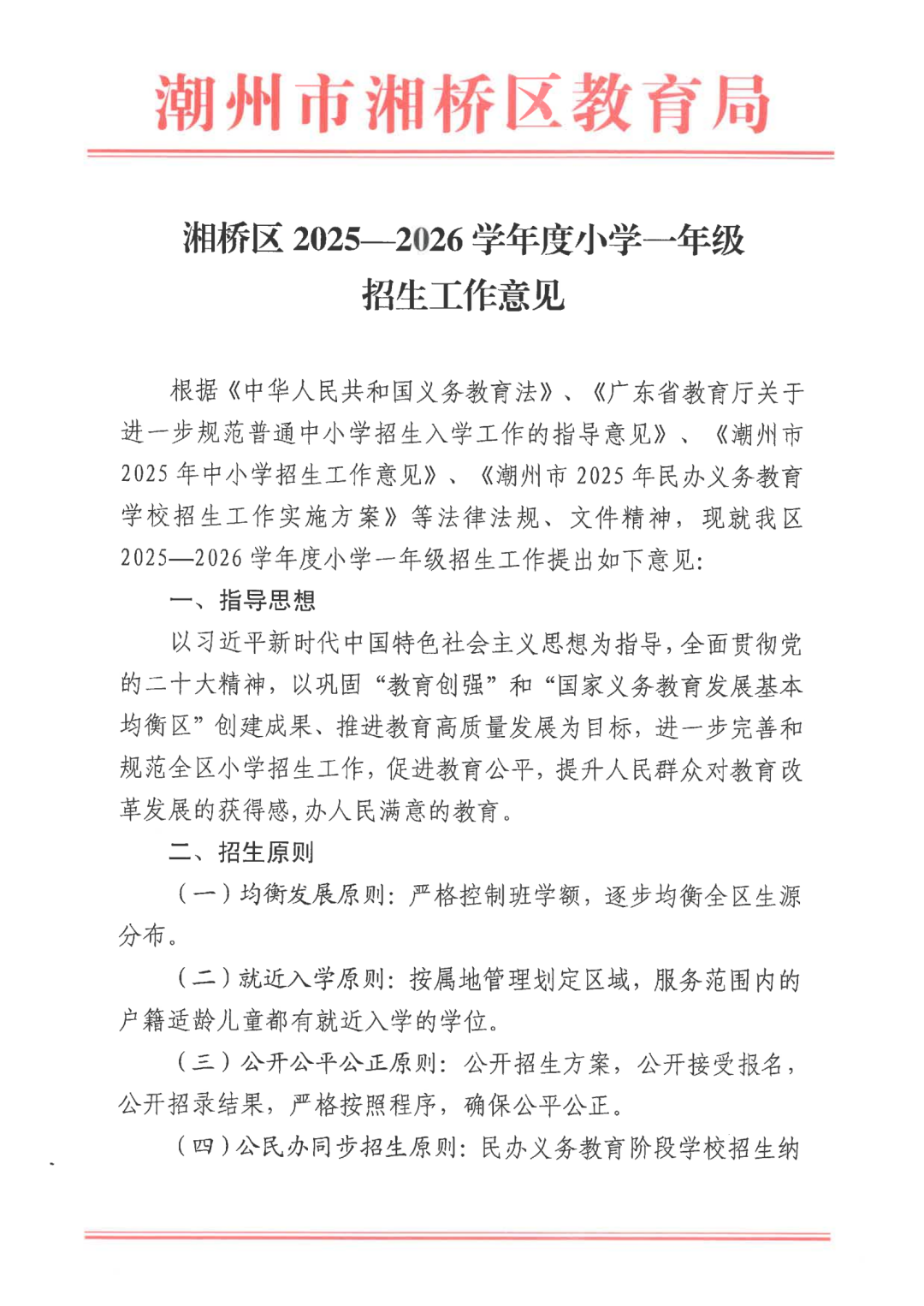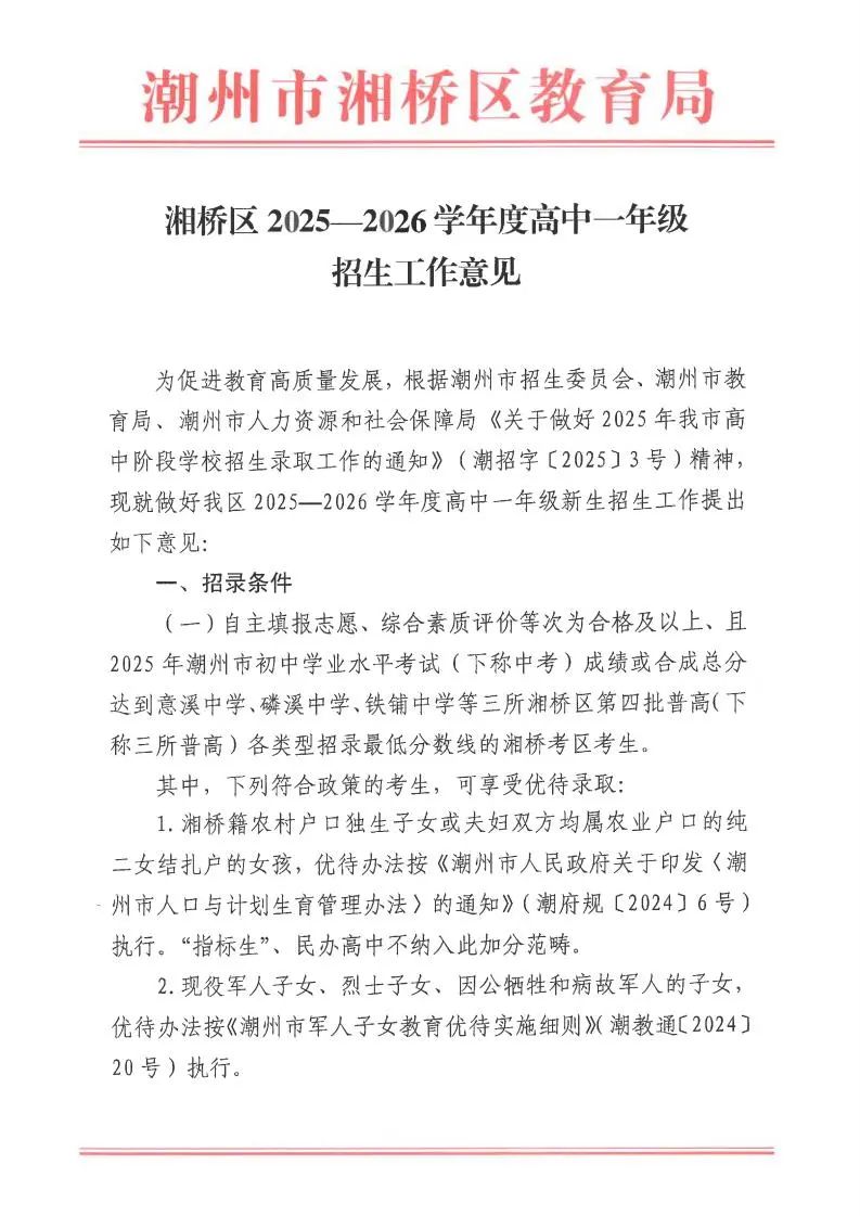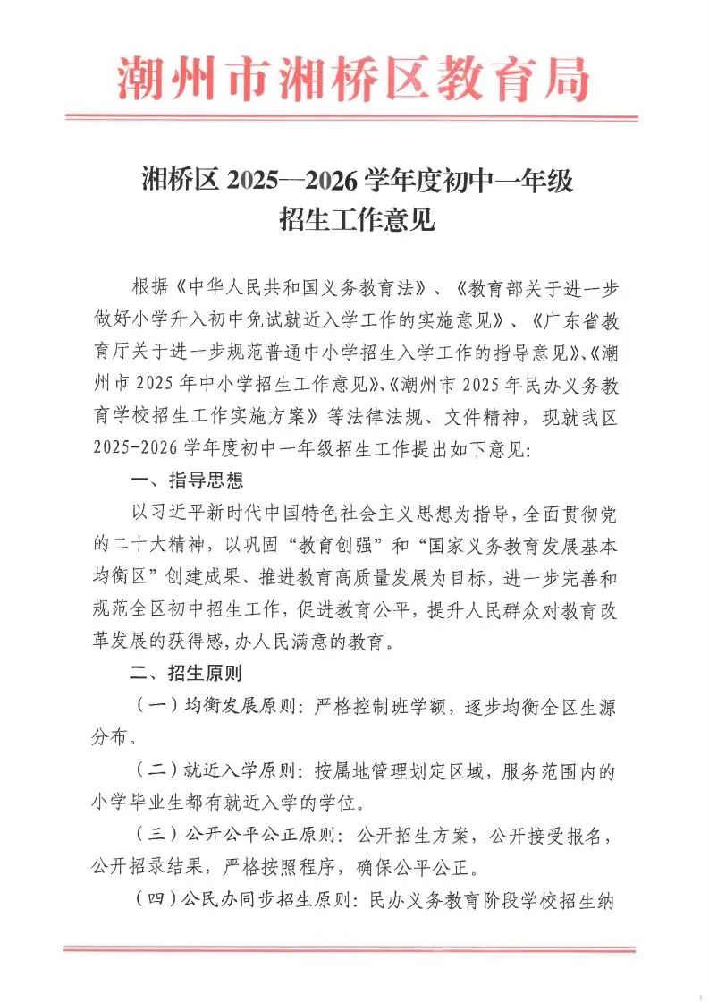 速看!湘橋區2025—2026學年度小學、初中、高中招生工作意見出爐