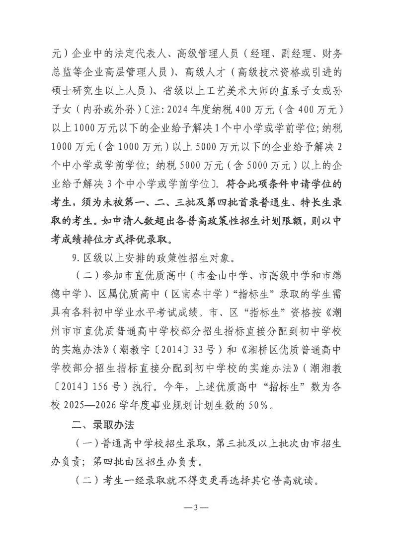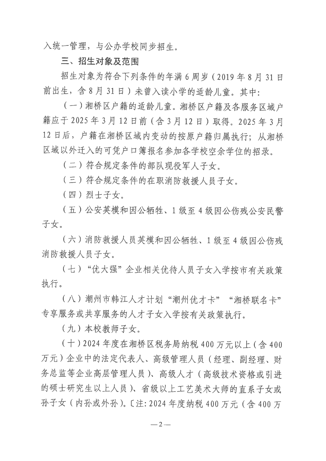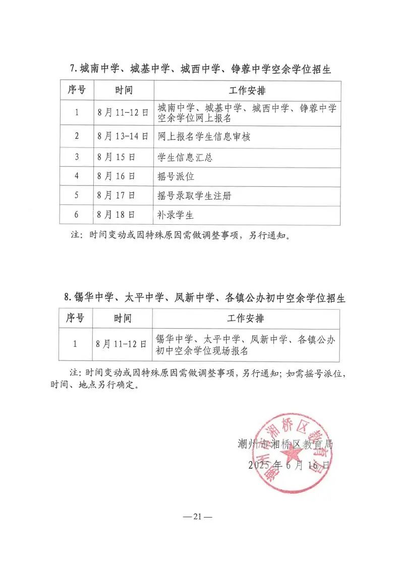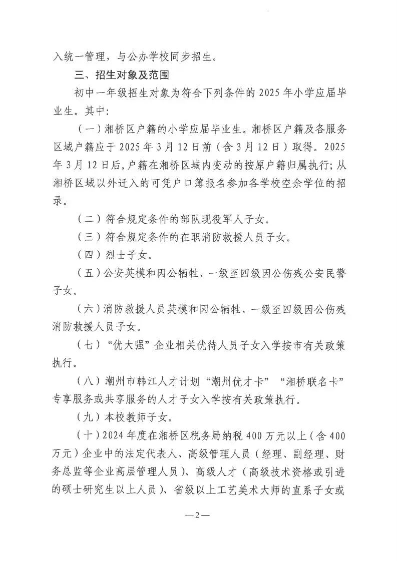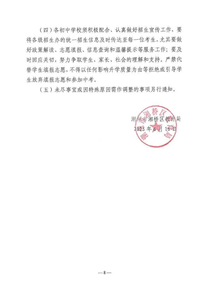 速看!湘橋區2025—2026學年度小學、初中、高中招生工作意見出爐