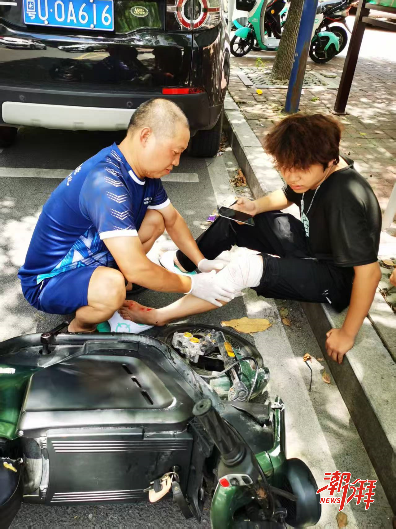 市紅十字志愿者諶鐵穩路遇車禍暖心救援。受訪者供圖