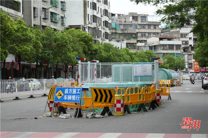 城新路施工處設有提示牌。潮州日報全媒體記者 莊園 攝