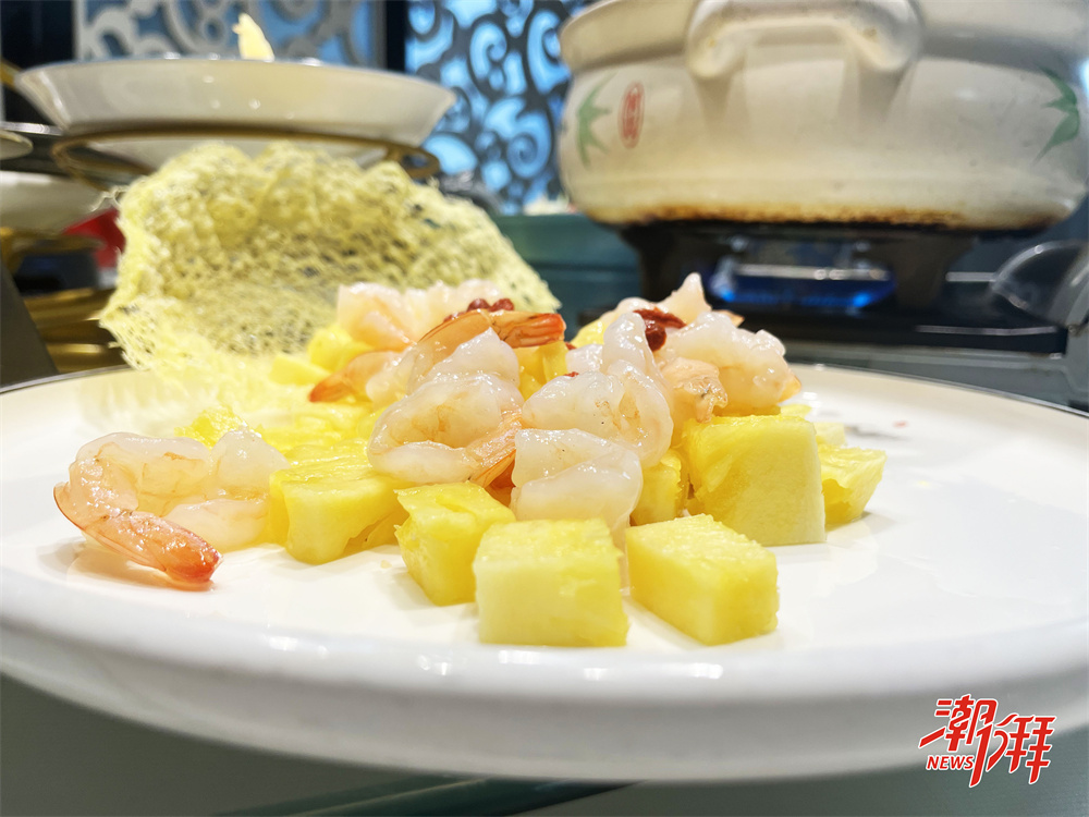 菠蘿蝦球將蝦肉的鮮美與菠蘿的清新完美融合,口感彈牙,味道鮮甜。