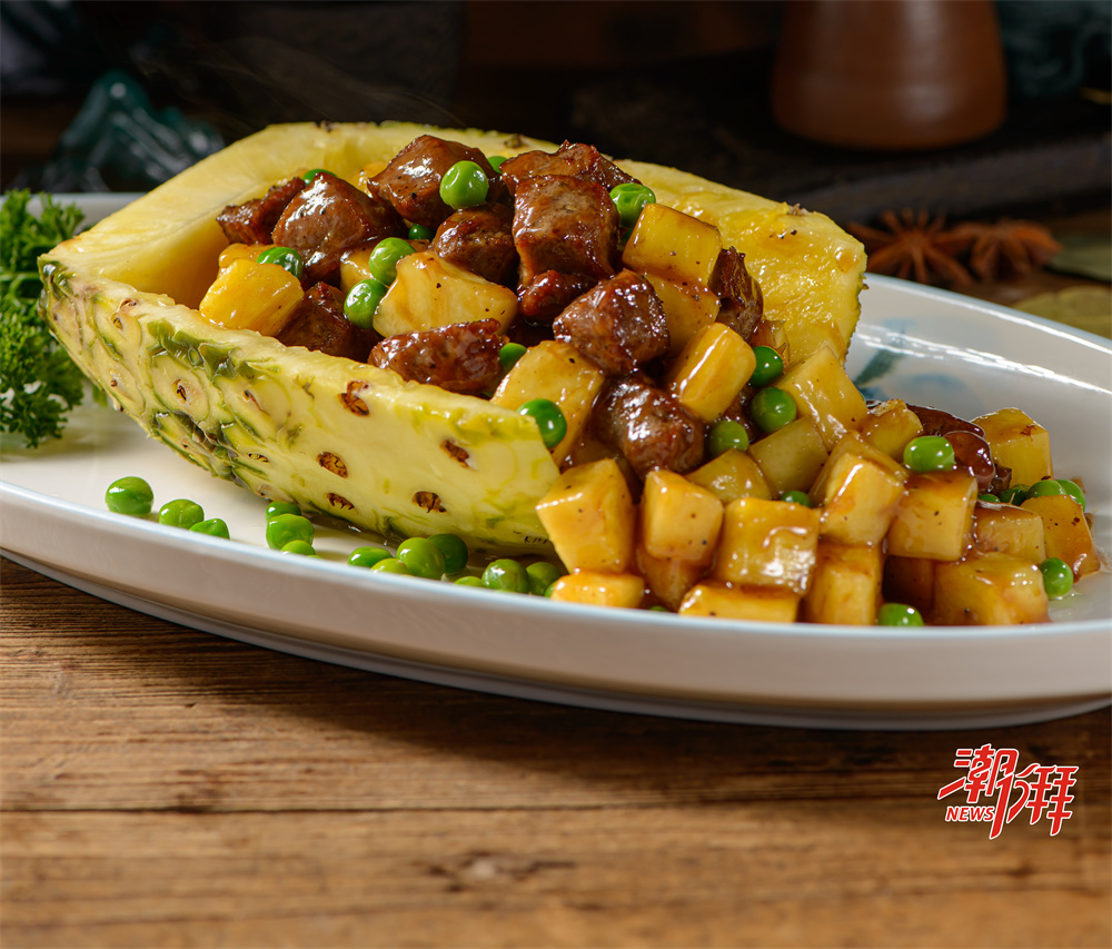 風味特色:這道菜中,牛肉粒鮮嫩多汁,菠蘿酸甜爽口,青椒、紅椒和洋蔥增添了色彩和豐富的口感。各種食材的搭配相得益彰,果香與肉香完美融合,讓人回味無窮。