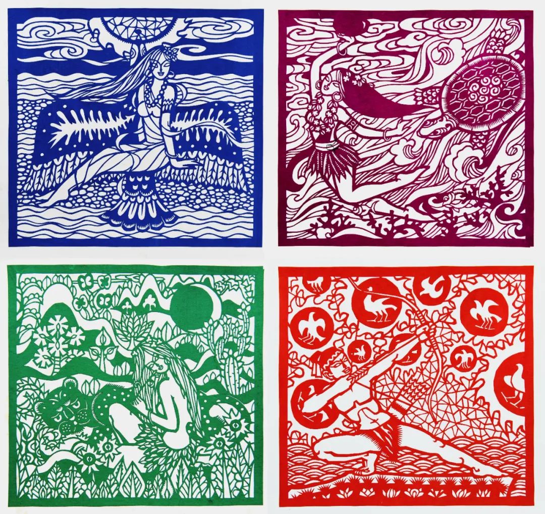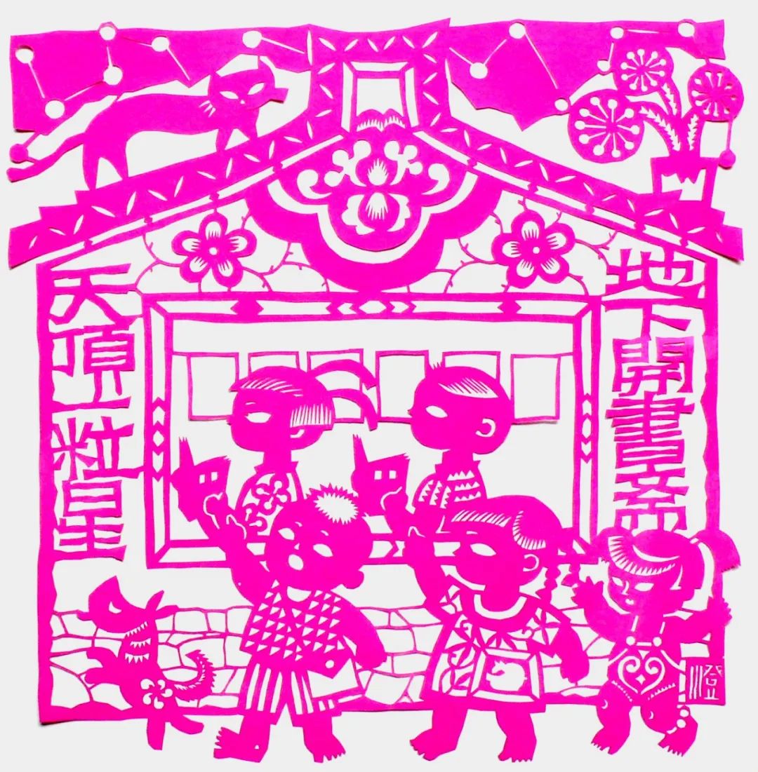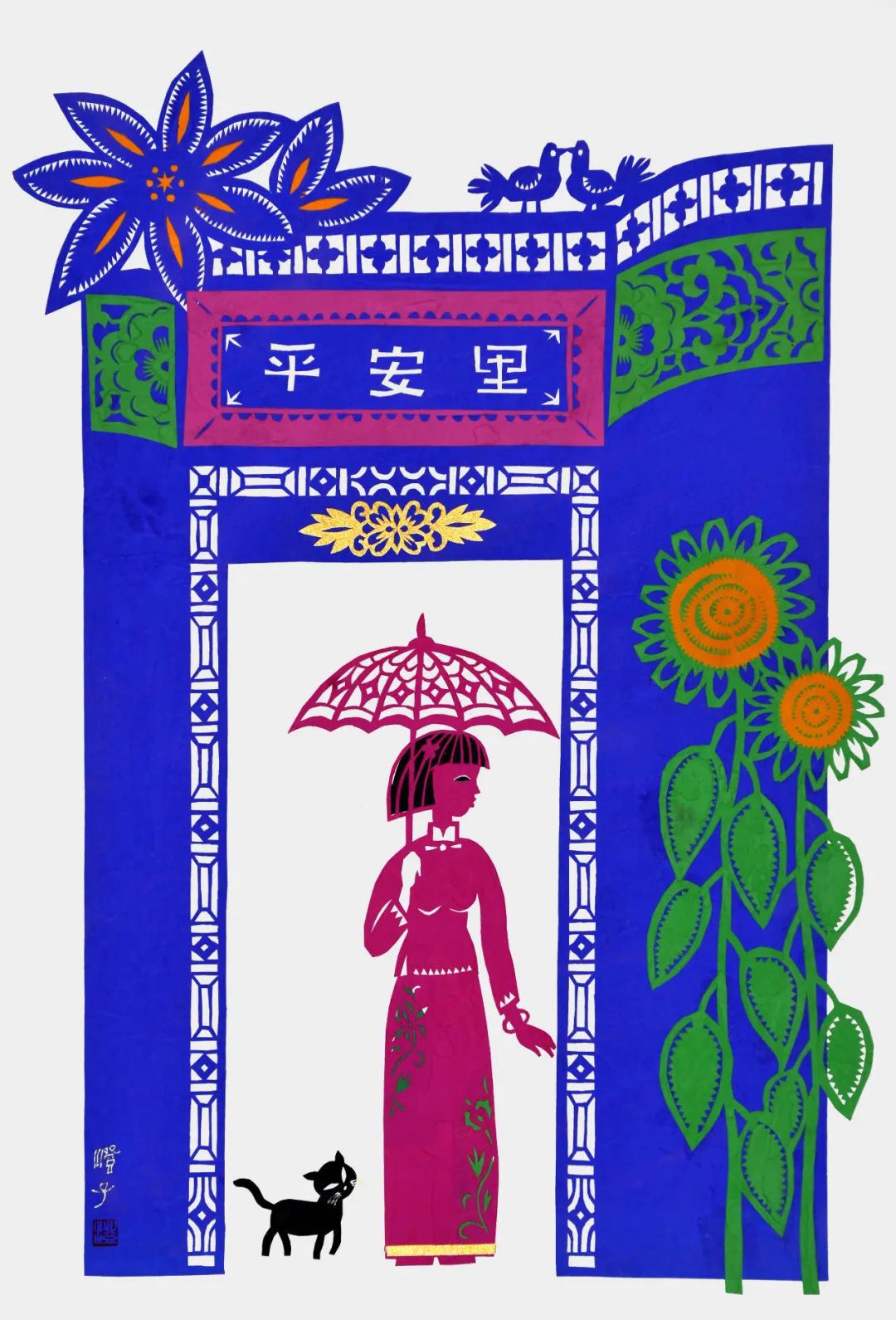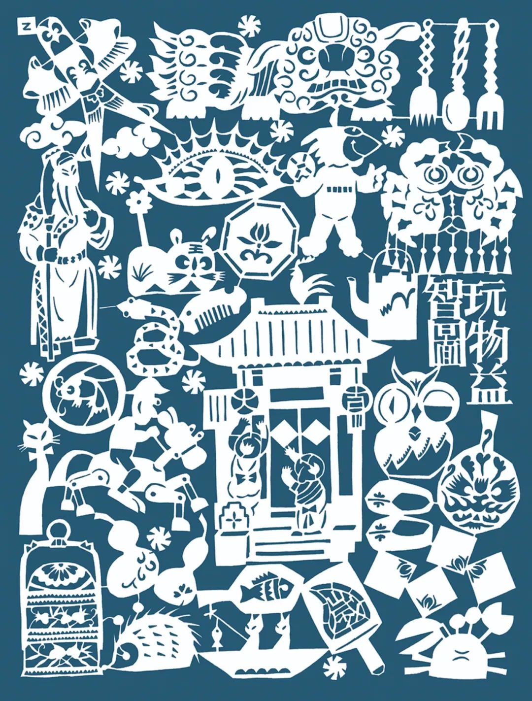 以拼貼套色技法重構剪紙視覺語法,實現其藝術獨立性:剪紙從裝飾躍升為承載哲思的觀念媒介。在風格成熟期突破了三重邊界:形式邊界,融合文學詩性與裝飾美學;功能邊界,從民俗工藝轉向美術館收藏、美術教材案例;文化邊界,將潮汕地域符號轉化為普世情感表達。