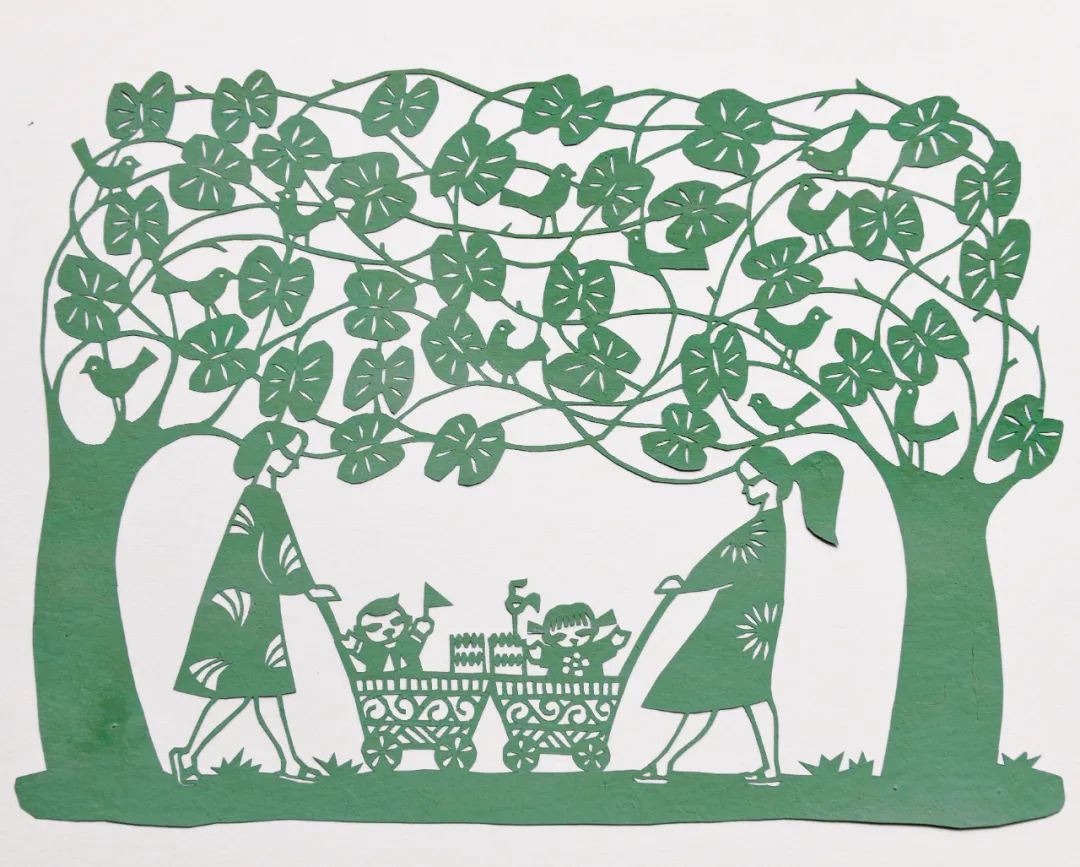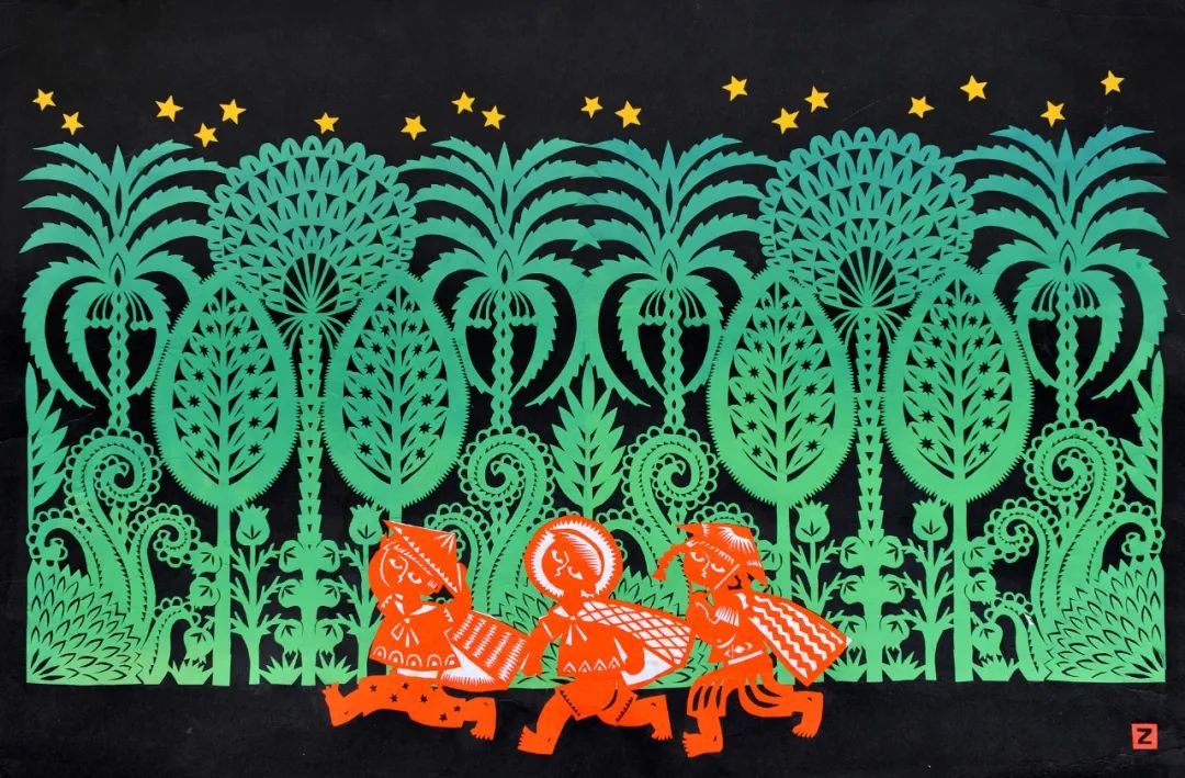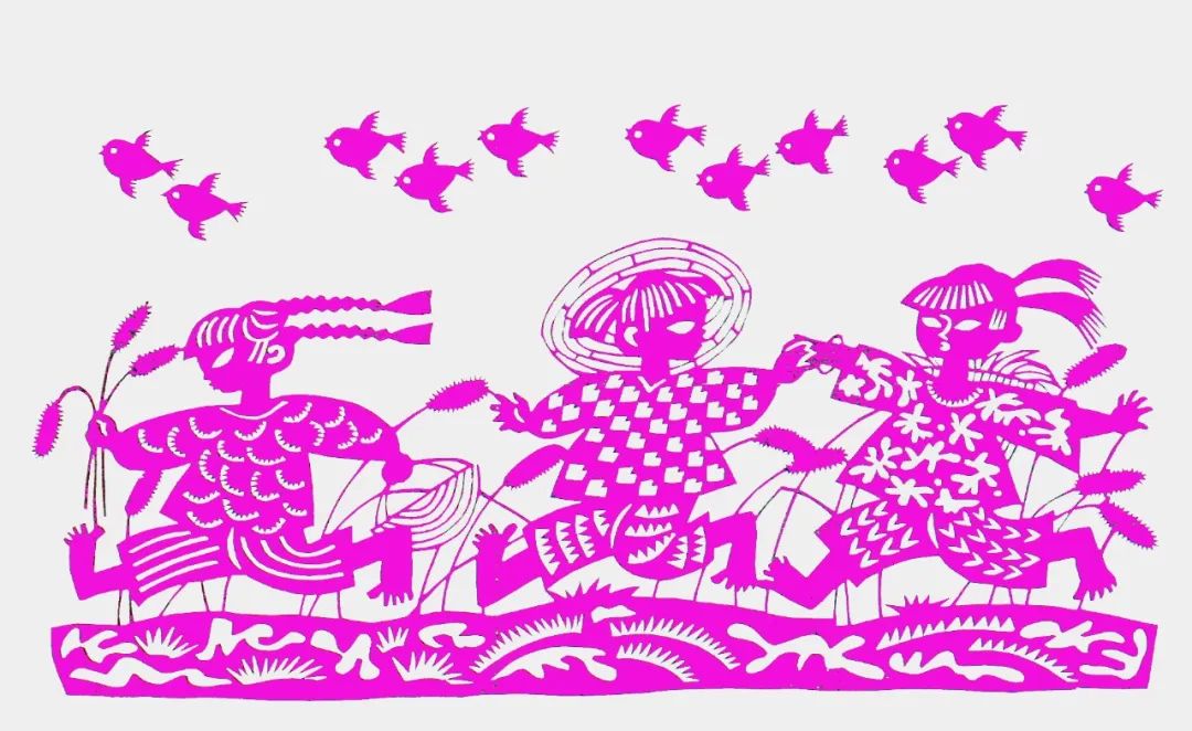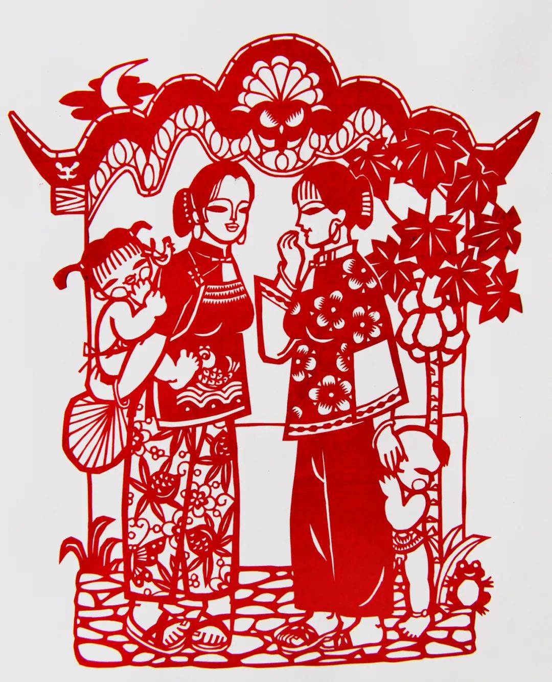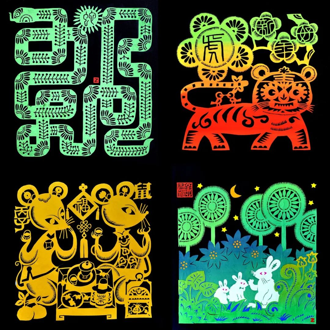 以拼貼套色技法重構剪紙視覺語法,實現其藝術獨立性:剪紙從裝飾躍升為承載哲思的觀念媒介。在風格成熟期突破了三重邊界:形式邊界,融合文學詩性與裝飾美學;功能邊界,從民俗工藝轉向美術館收藏、美術教材案例;文化邊界,將潮汕地域符號轉化為普世情感表達。