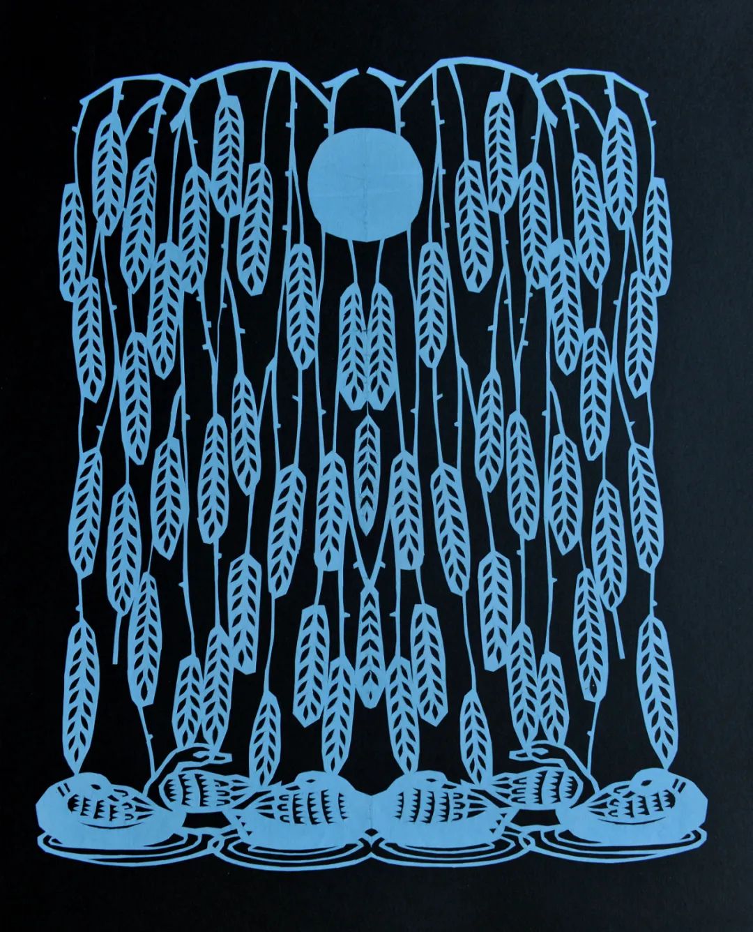 趙澄襄以三重突破性確立了獨特的坐標。以潮汕民間剪紙為基,在材質上,突破蠟光紙、土紅紙的傳統(tǒng)框架,創(chuàng)新運用自染彩箋與綜合媒介,賦予剪紙以物質層面的新生;在形式上,將裝飾性圖樣轉化為承載哲思的觀念空間,實現從“圖樣民藝”到“觀念媒介”的本質躍遷;在敘事上,以《安謐》《月光溶溶》等經典作品為范例,通過“減法性”語言將功能性敘事升華為個體生命詩篇。這些變革使剪紙從民俗工藝蛻變?yōu)榫哂袛⑹律疃群驼軐W思辨特質的當代藝術載體。其作品被中國美術館典藏、入選全國美展、核心專業(yè)刊物《美術》刊出專題、編入美術教材,印證了這一體系的學術價值。