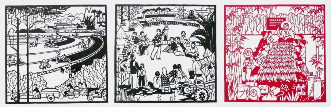 知青時期,剪紙是精神慰藉。扎根鄉(xiāng)土生活,在傳統(tǒng)潮汕剪紙程式中融入寫實,作品兼具民間生活氣息與時代印記,剪紙風格雛形初現——延續(xù)裝飾性,亦含現實溫度。