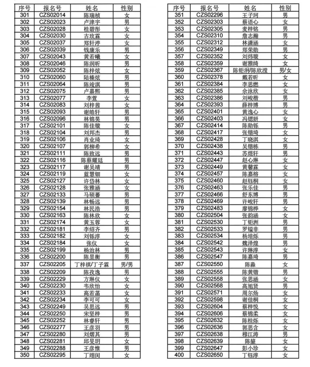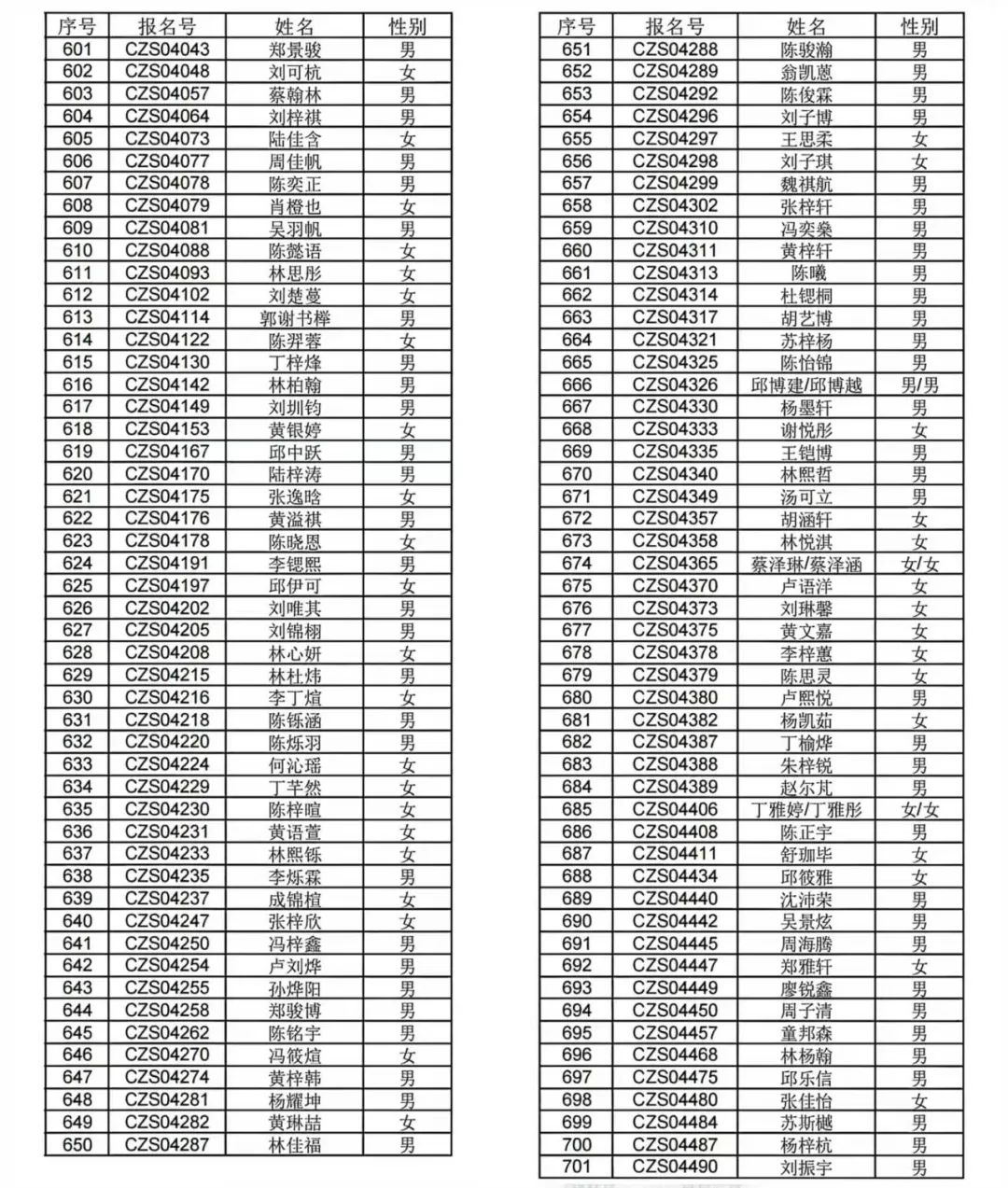 根據《潮州市金山實驗學校2025—2026學年度初一級招生簡章》,我校于7月14日至16日現場對搖號招生中第一志愿報讀我校的學生進行資格初審。本次搖號招生中第一志愿報讀我校的學生共736人次,總共746人(含雙胞胎10對)。共有701人次,總共711人(含雙胞胎10對)通過審核,現予以公示,具體名單附后。