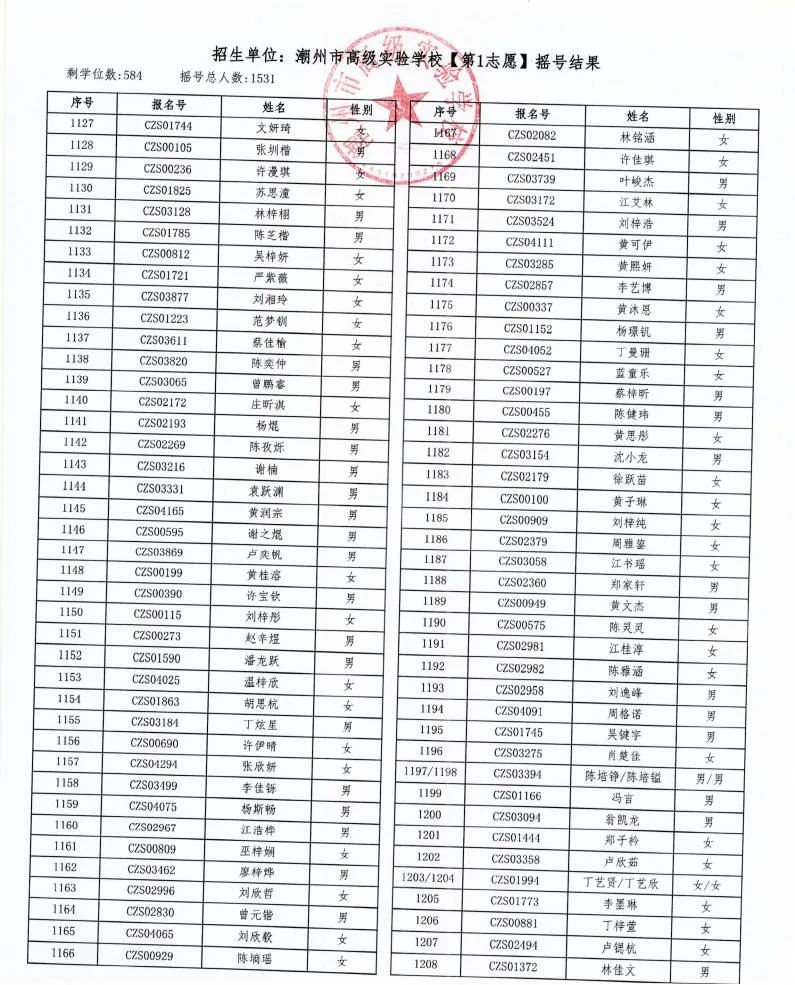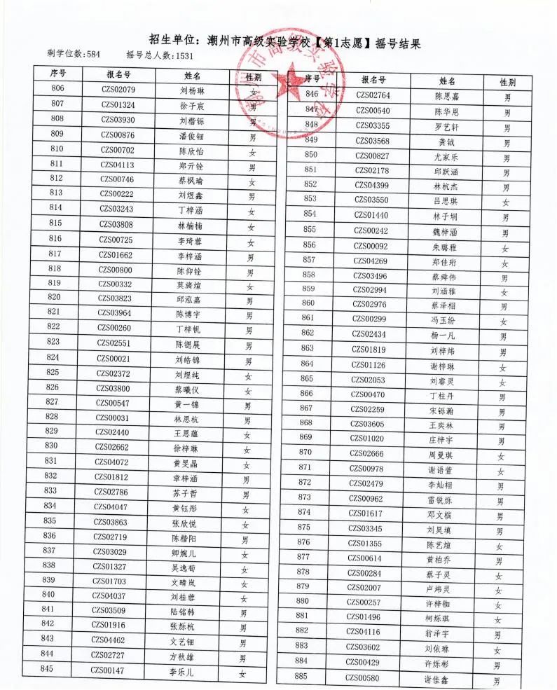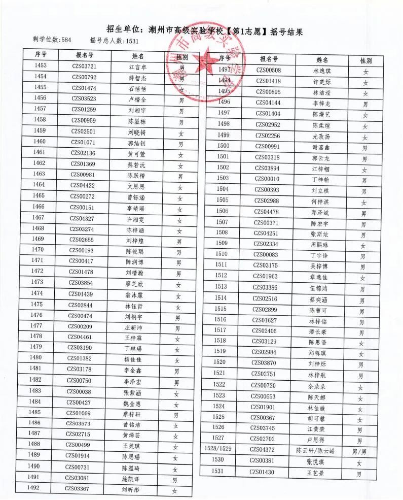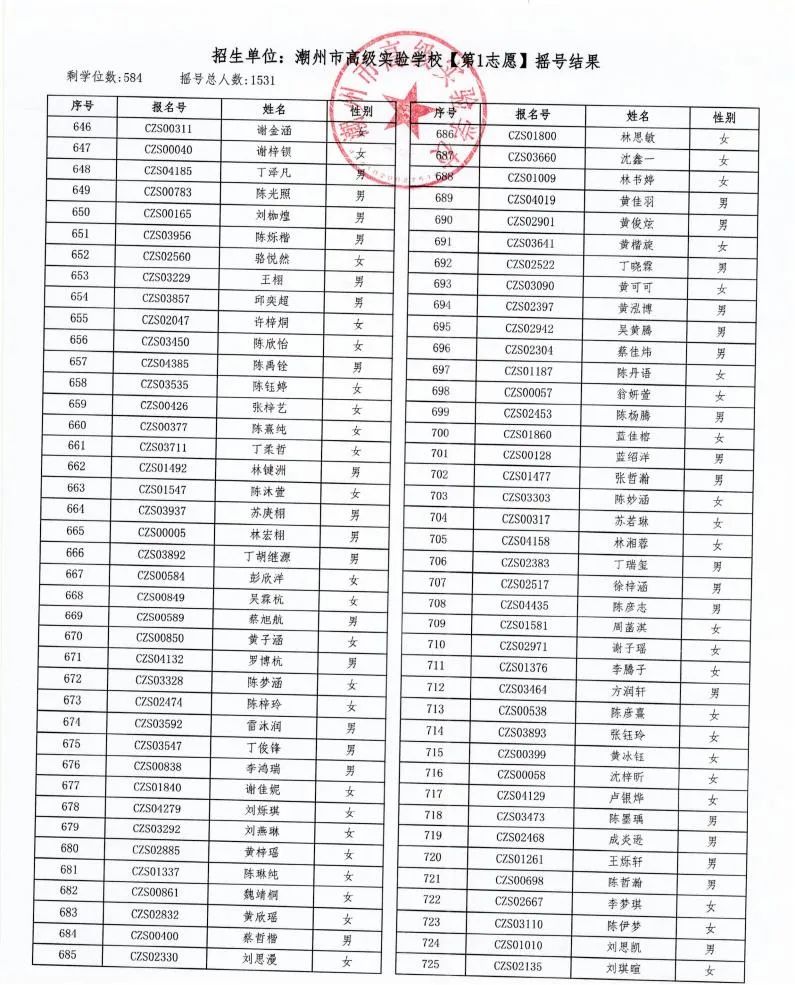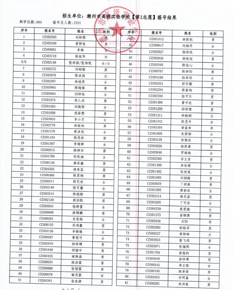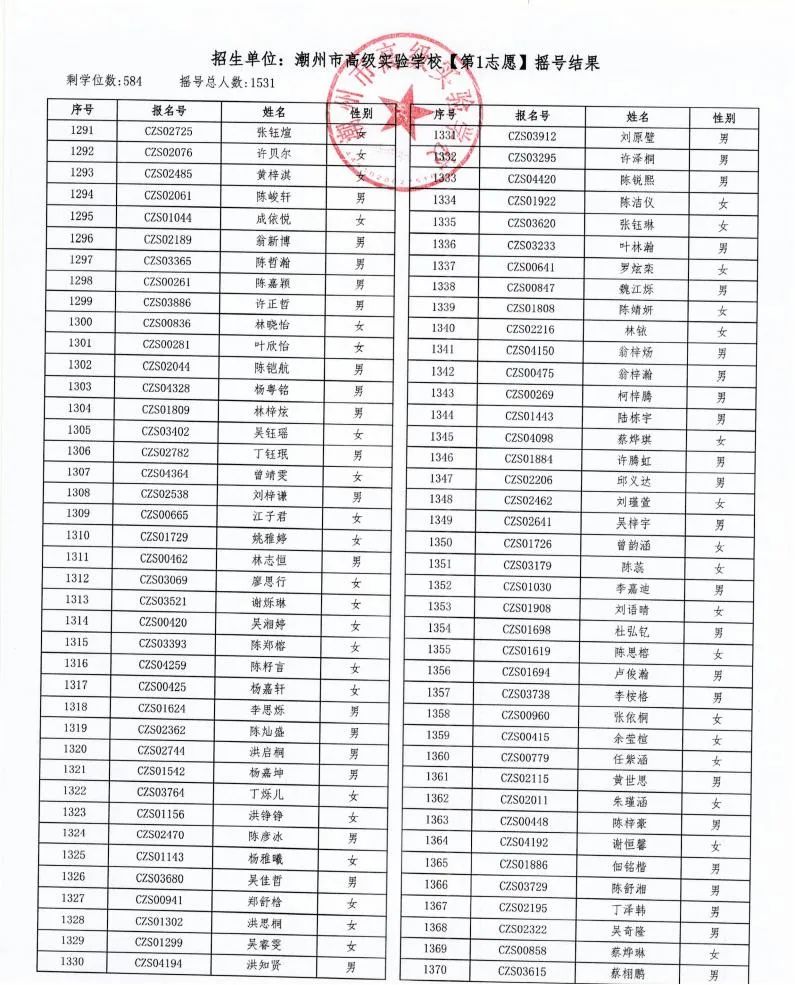 7月18日,潮州市金山實驗學校、潮州市高級實驗學校、湘橋區城南實驗中學、湘橋區城基實驗中學4所初中公開搖號招生同時進行,潮州市高級實驗學校搖號結果出爐。