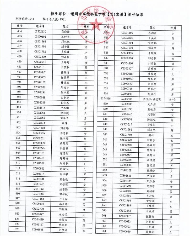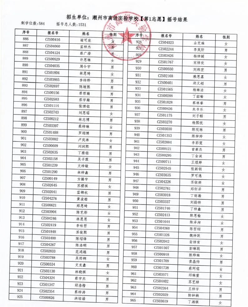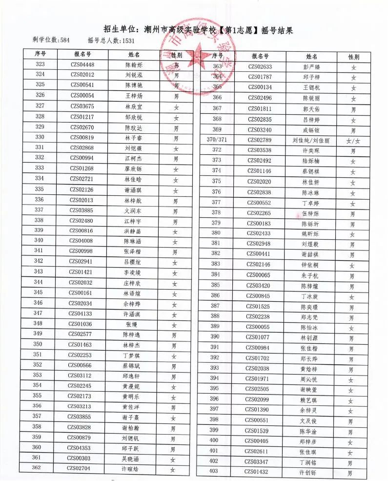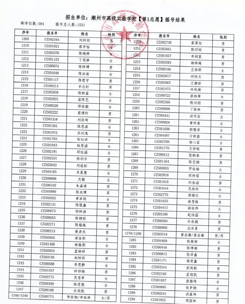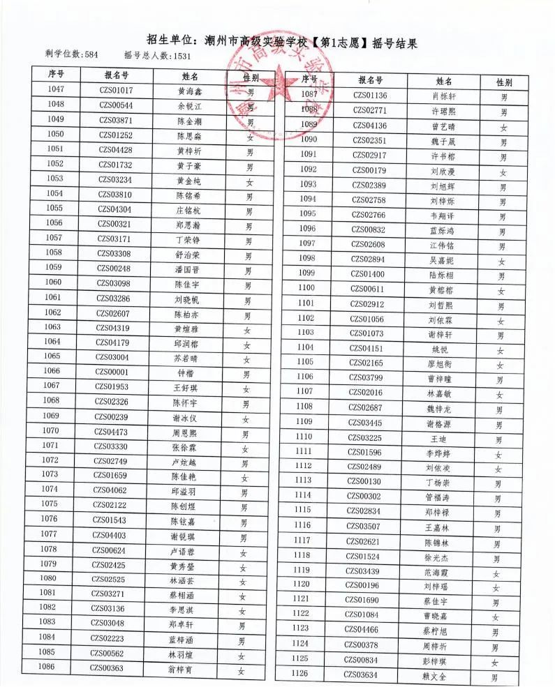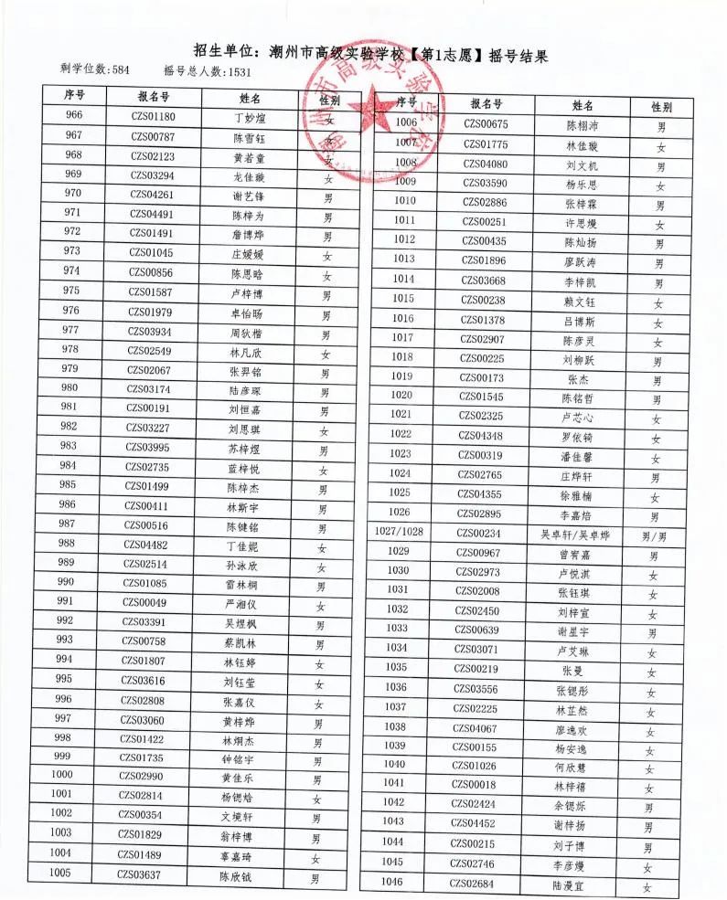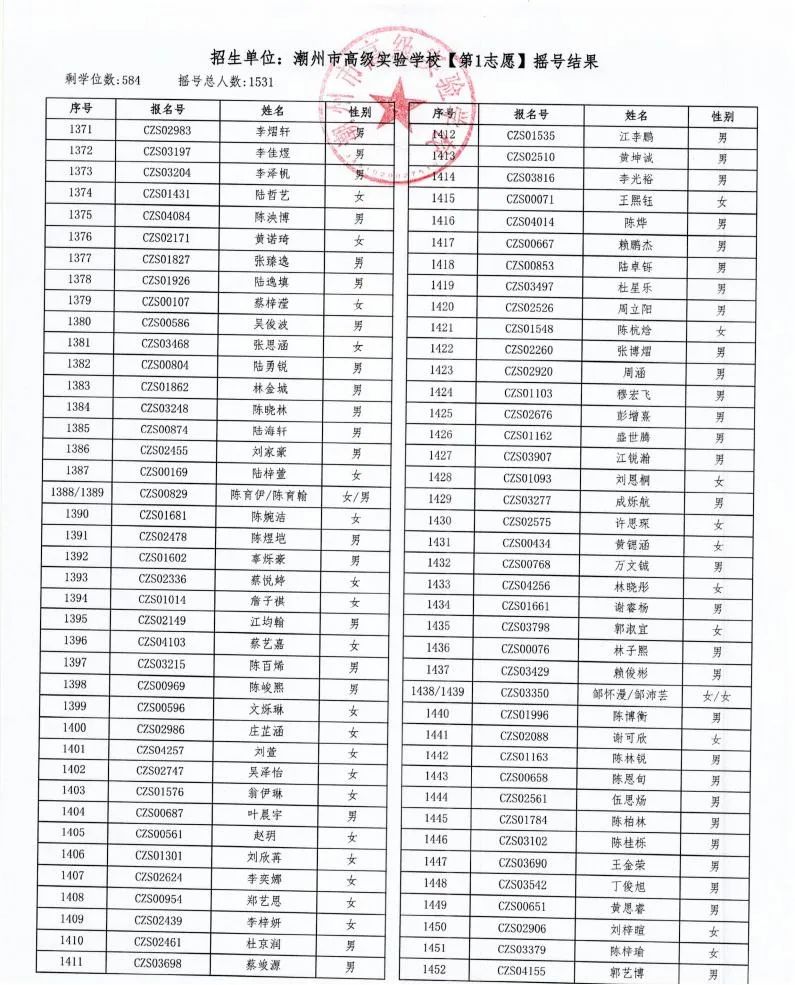 7月18日,潮州市金山實驗學校、潮州市高級實驗學校、湘橋區城南實驗中學、湘橋區城基實驗中學4所初中公開搖號招生同時進行,潮州市高級實驗學校搖號結果出爐。