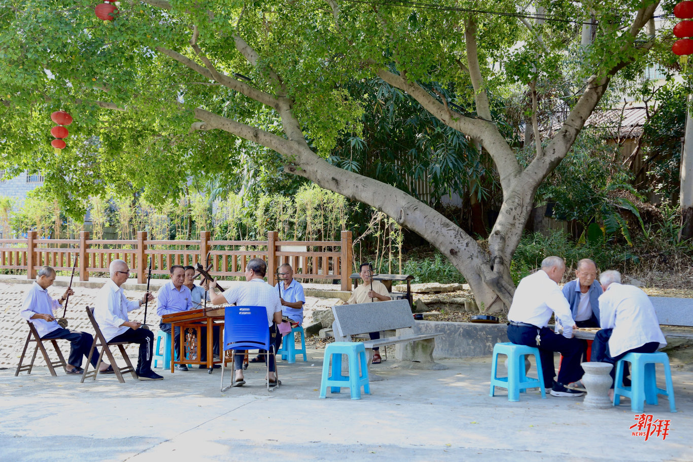 三新鄉村村民時常聚在一起奏樂下棋。 丁唐 攝