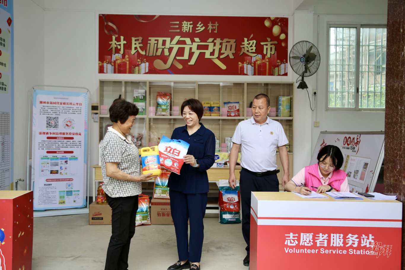 村莊“面子”靚了,“里子”的文明鄉風也在深耕厚植中煥發新氣象。三新鄉村將“破立并舉”的智慧融入文明培育,以“積分制”管理激活村民參與鄉村治理內生動力。村里試點推行“潮州市新時代文明實踐云平臺”積分制,打造實體“積分超市”,將綠美管護、人居環境整治、志愿服務等治理事項納入積分體系。村民參與即可獲積分,累積后可在超市兌換實用生活用品。這一舉措激發了村民的主人翁意識。“積分制推行后,大家爭著打理公共區域花草。”村民李伯高興地說。在村民共同努力下,去年三新鄉村獲評市級“美麗庭院”示范村,2戶家庭獲評省級“美麗庭院”戶,6戶獲評市級“美麗庭院”典型戶。