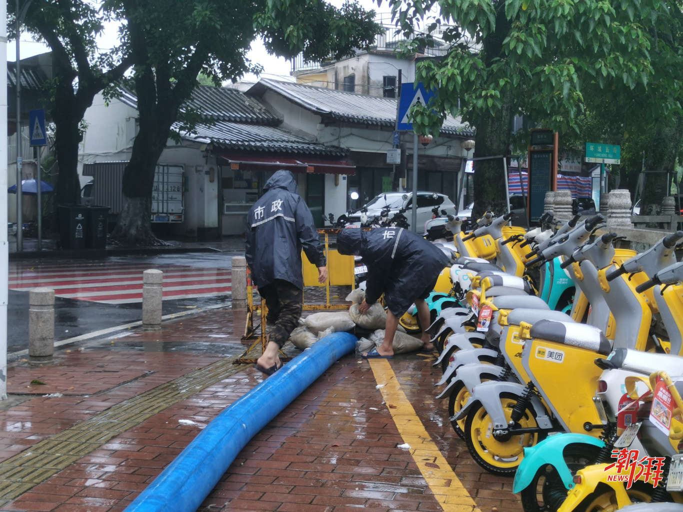 記者在潮州大道看到,排澇搶險工作人員正冒雨清理排水口的樹葉、雜物,確保雨水能夠順利排入管網。在環城西路西湖泵站,市政工作人員已啟動應急排澇車緊張作業。“我們天沒亮就過來了,西湖這里的地勢低,高處的雨水都往這邊走,我們運用排澇車把西湖的污水排到市政管網里面,避免積水內澇。”市政工作人員姚民富介紹道。