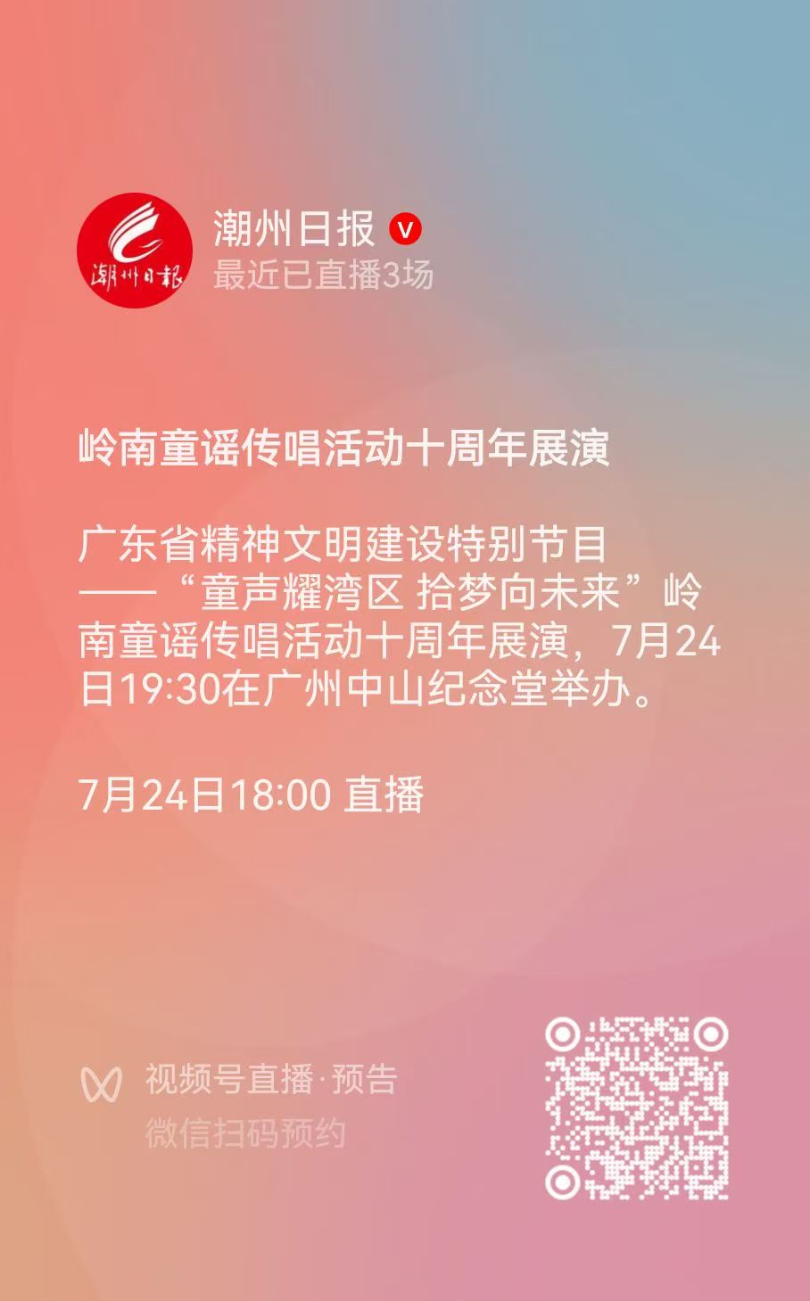 觀看路徑:識別海報中的二維碼,一鍵預約觀看潮州日報視頻號直播