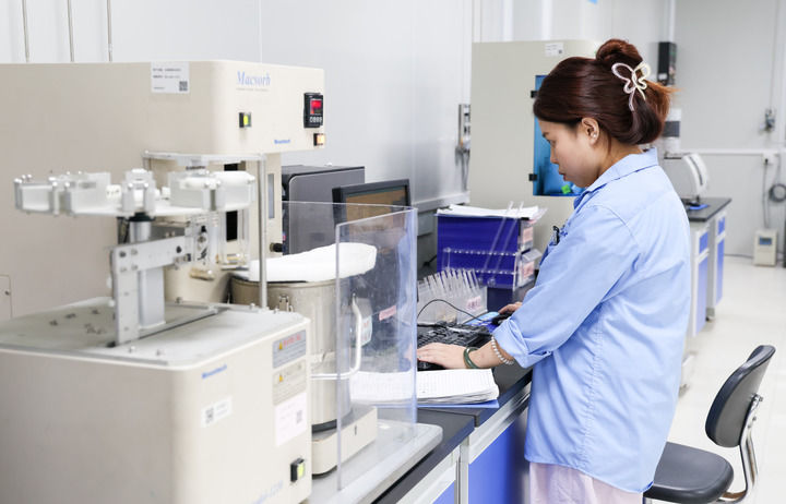 研發(fā)人員在三環(huán)集團(tuán)潮州廠區(qū)的測試分析中心工作(5月28日攝)。新華社記者 毛思倩 攝