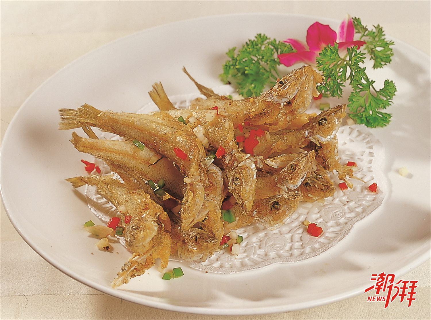 鐵鍋燒至青煙微騰,舀入半指厚的瑩白豬板油。待油花熱烈翻涌,薄鹽輕腌的沙尖魚滑入油海,“滋啦”一聲脆響,如節慶的爆竹點燃灶臺的歡騰。竹筷輕壓魚身,耐心等待魚皮烙上細密的蛛網焦紋,此時撒入普寧豆醬與金黃蒜片。熱油瞬間激發出濃郁的咸鮮香氣,直沖屋宇,魚皮在滾油中收縮蜷曲,披上金黃酥脆的戰甲。起鍋時,焦脆的外殼包裹著內里雪白細嫩的魚肉,蘸少許魚露送入口中——咸鮮裹挾著豐腴油脂在舌尖化開,配一碗米香濃郁、凝著米油的白糜,正是潮州飲食哲學中“食魚配糜”的至簡至味。