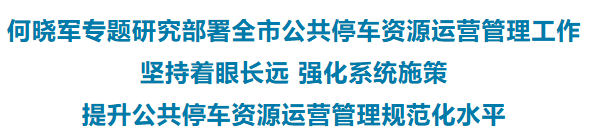 近日,市委書記何曉軍專題研究部署全市公共停車資源運營管理工作,強調要深入學習貫徹習近平總書記關于城市工作的重要論述,堅持著眼長遠,強化系統施策,持續提升公共停車資源運營管理科學化、精細化、規范化水平,更好滿足群眾出行和城市發展需求。
