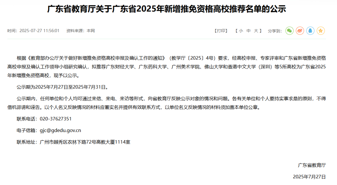 擬推薦廣東財經(jīng)大學(xué)、廣東藥科大學(xué)