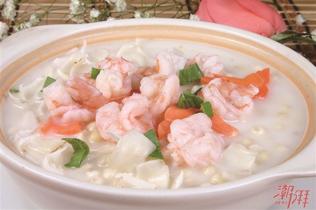 潮州人對“鮮”的執(zhí)念,在此煲中臻于極致。海捕明蝦需活蹦入廚,剝殼留尾,冰鎮(zhèn)激出脆彈,蝦肉透如水晶。鮮百合取龍牙種,瓣瓣肥厚瑩白,猶帶晨露清香。新采芡實(shí)粒粒飽滿如珍珠。