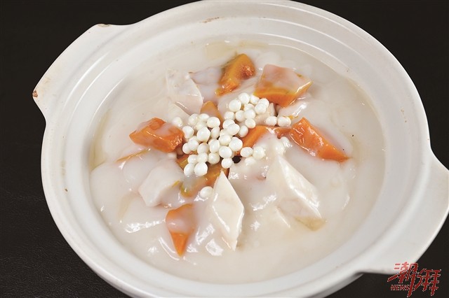 文火再煨一刻鐘,見芡實(shí)瑩白微透,撒枸杞十?dāng)?shù)粒如朱砂點(diǎn)染,淋椰漿半盞,乳白漿汁在金黃湯羹中漾開云紋。一勺舀起,芋頭粉糯化沙,南瓜甘甜如蜜,芡實(shí)彈韌帶糯,椰香柔滑裹舌。輕嘗一口,清潤直抵肺腑,燥熱盡消。