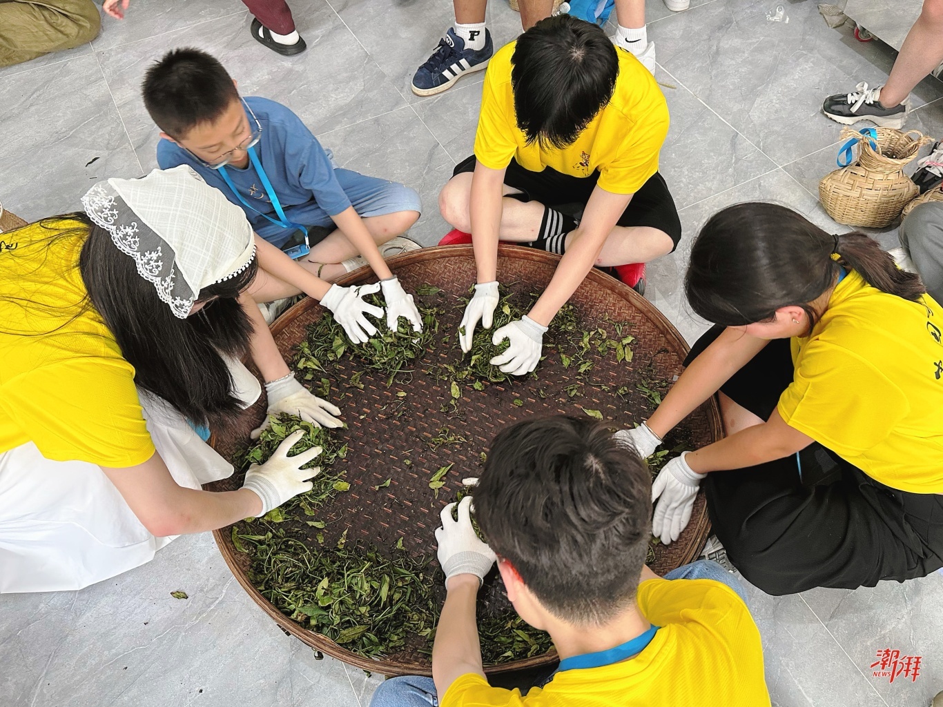 學員們體驗制茶工藝。