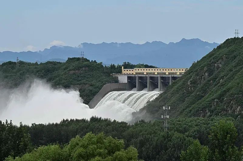 2025年7月29日,北京密云區,密云水庫開閘泄洪。