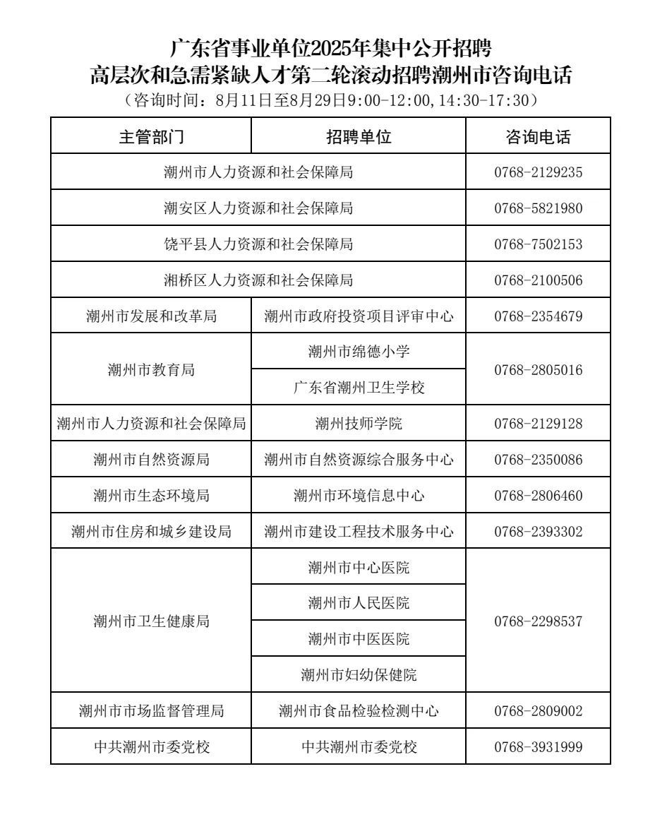 關于廣東省事業單位2025年集中公開招聘高層次和急需緊缺人才第二輪滾動招聘有關事項的公告