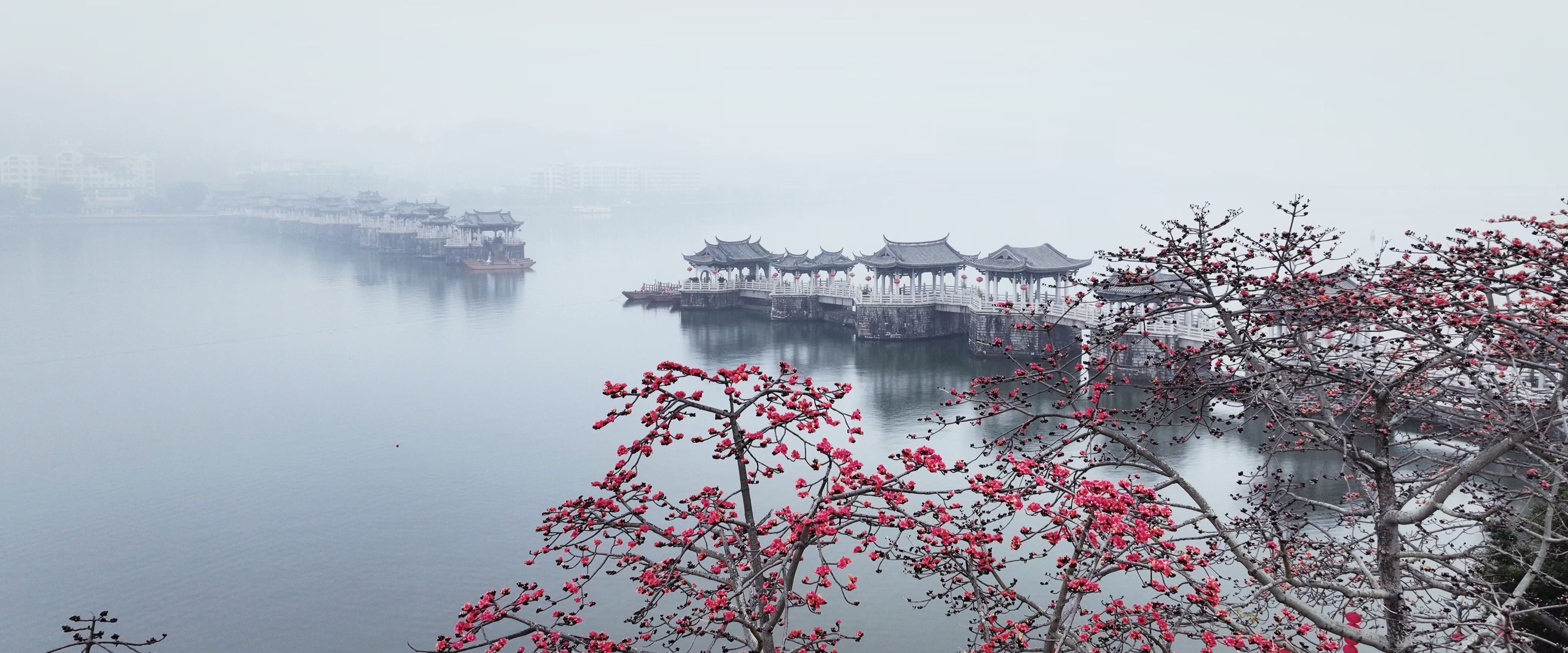 “湘橋春漲水迢迢,十八梭船鎖畫橋”,鄭蘭枝筆下的廣濟橋在春汛中化作流動的長虹,宛如一條巨龍橫臥在韓江之上,氣勢磅礴。這座始建于宋代的“梁舟結合”古橋,承載著無數詩人的才情與想象,成為了潮州文化的重要象征。
