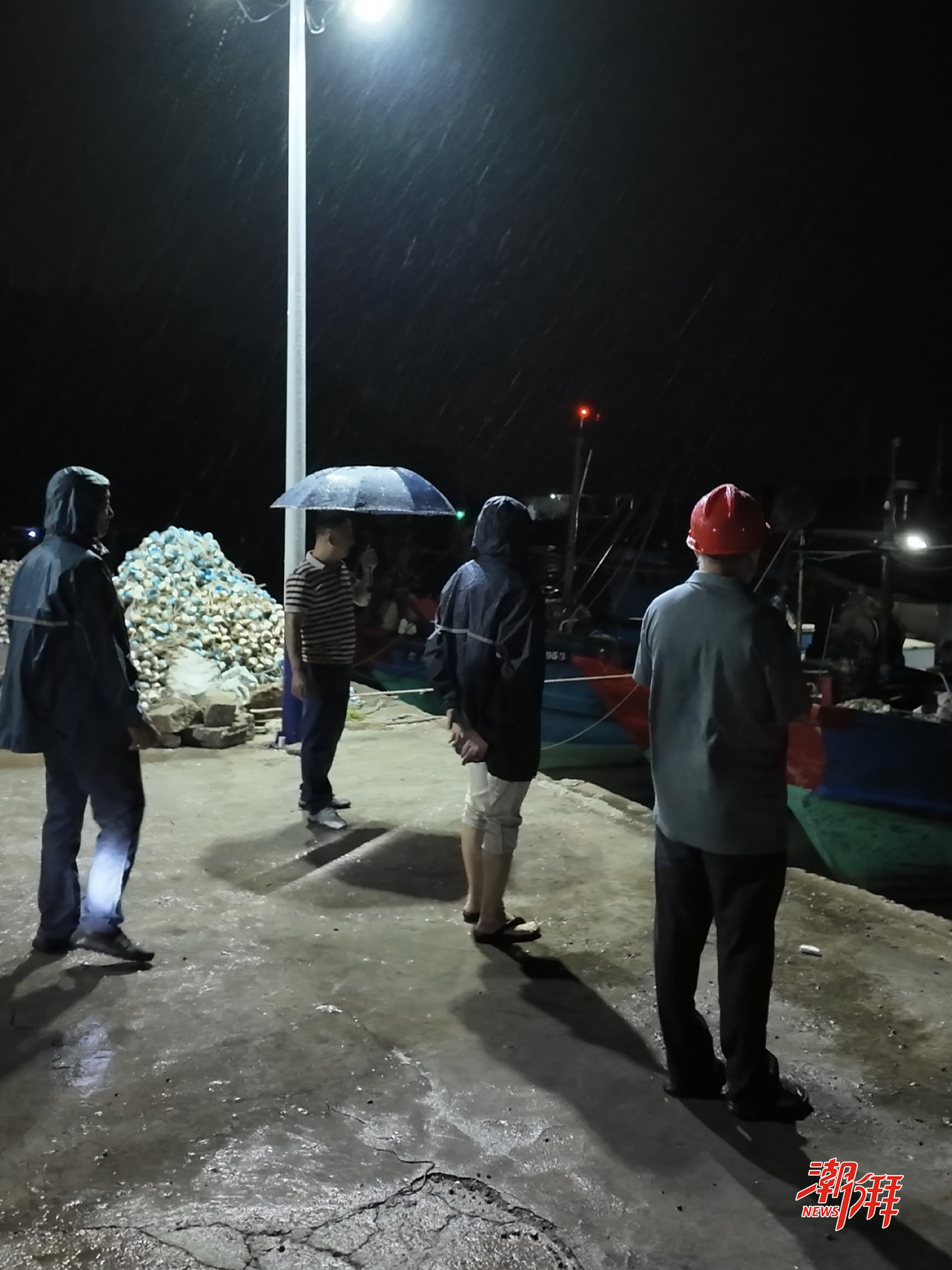當晚8時30分左右,天下著雨,記者來到海山鎮隆西渡口,大大小小的漁船密密麻麻地停靠在港口避風。海山鎮政府工作人員及各社區村漁業干部正在漁船上開展巡查,對靠岸漁船逐只排查,確保所有漁民上岸避風。