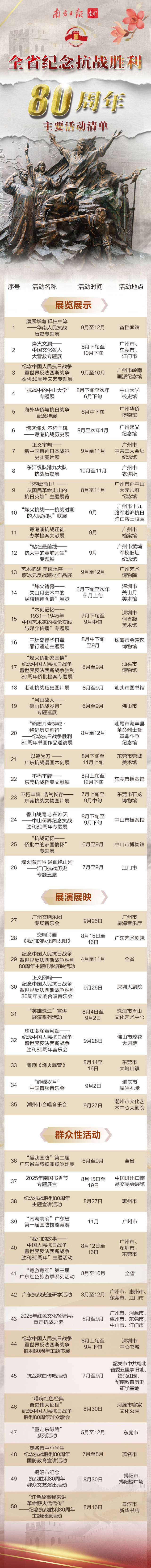 在中國人民抗日戰(zhàn)爭暨世界反法西斯戰(zhàn)爭勝利80周年之際,廣東將開展系列專題研究、學(xué)術(shù)研討,推出系列專題展覽和優(yōu)秀文藝作品展演,舉辦系列群眾性活動,團(tuán)結(jié)動員億萬南粵兒女更好地銘記歷史、緬懷先烈,為強國建設(shè)、民族復(fù)興作出新的更大貢獻(xiàn)。