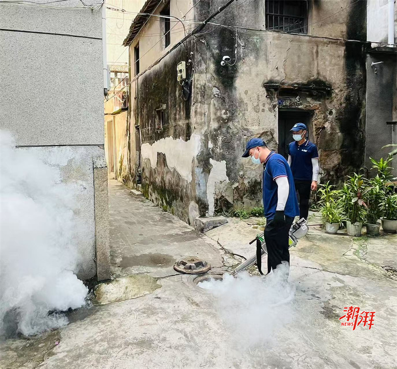 滅蚊專業(yè)消殺隊伍深入街頭巷尾等重點領(lǐng)域進行藥物消殺。(潮州日報全媒體記者 陳瑩 攝)