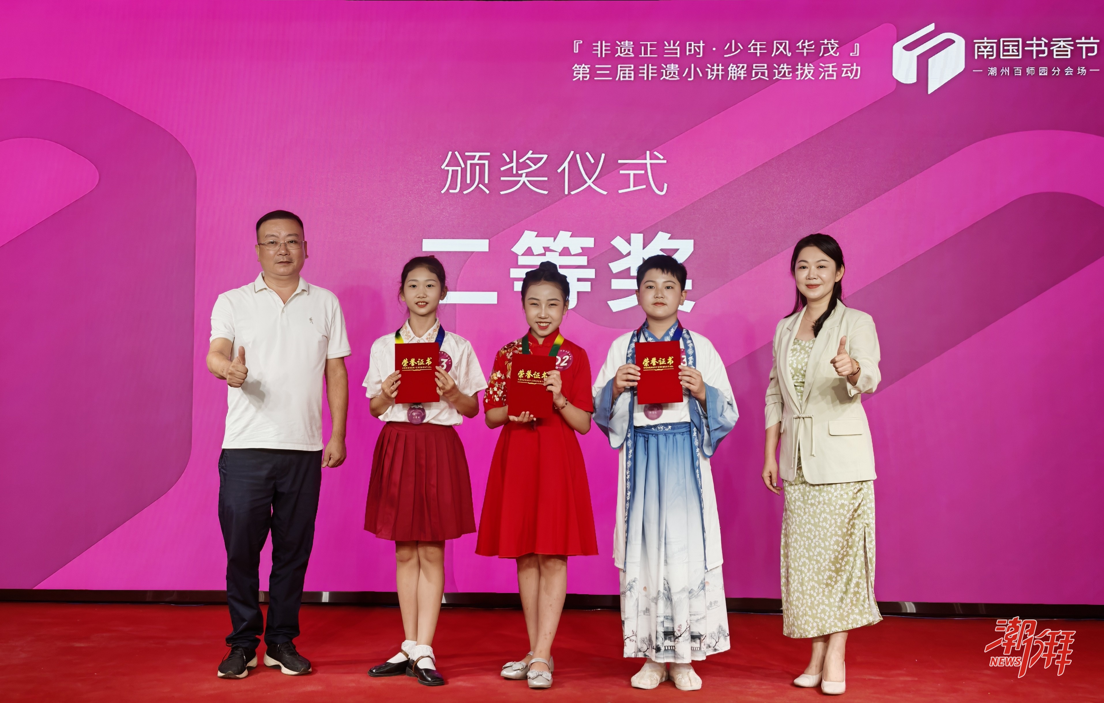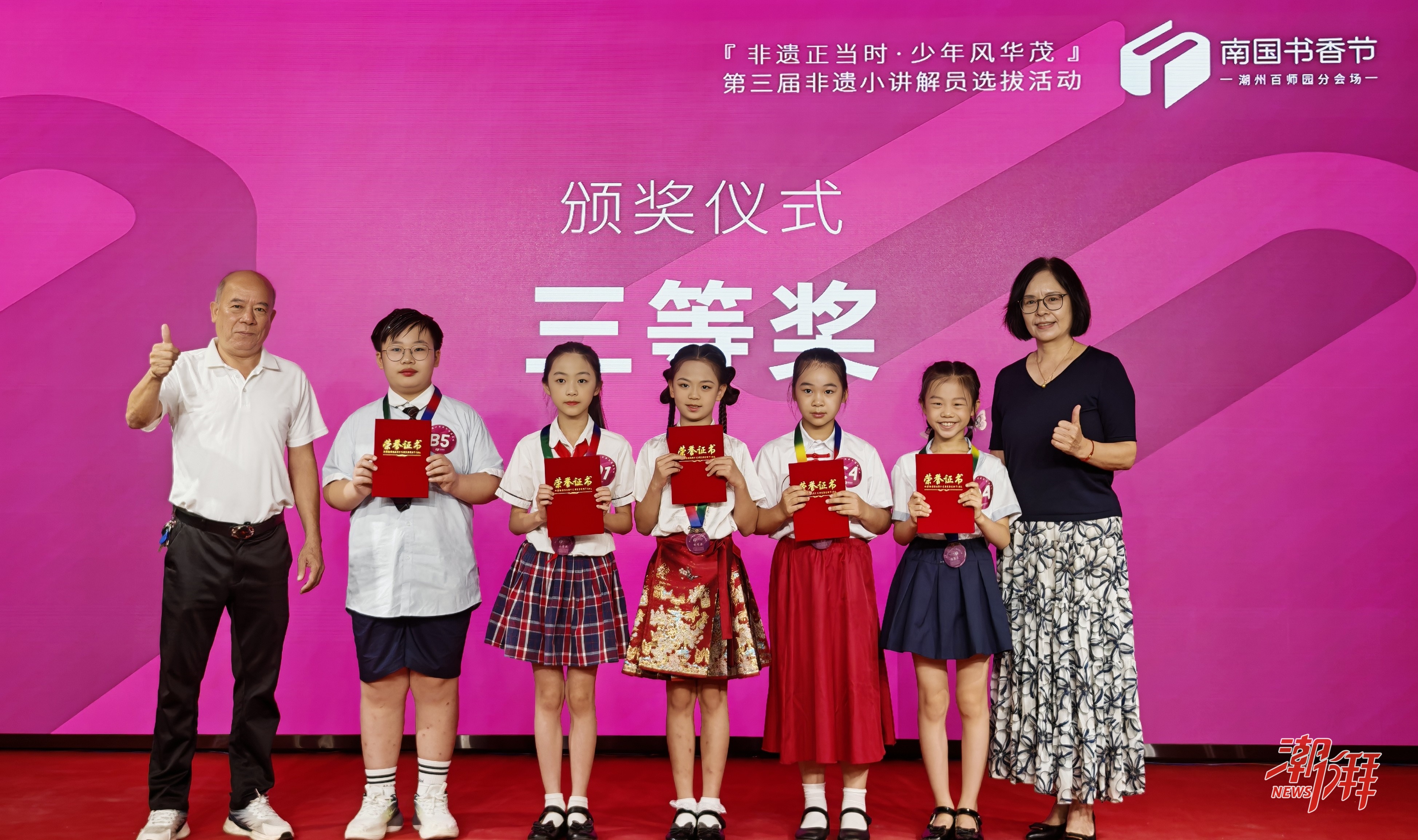 近日,“非遺正當時·少年風華茂”第三屆非遺小講解員選拔活動決賽在潮州百師園創意館舉行。本次活動是2025年南國書香節潮州分會場暨第六屆讀書月活動的重要組成部分,由市關心下一代工作委員會、市語言藝術協會、潮州百師園文化產業有限公司聯合主辦。