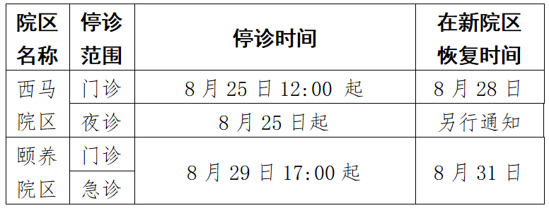 我院新院區(qū)即將啟用,現(xiàn)將舊院區(qū)停診及新院區(qū)啟用安排通知如下,敬請知悉。
