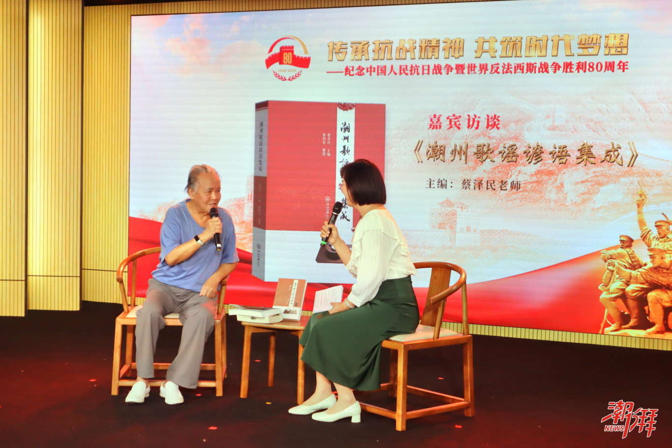 《潮州歌謠諺語集成》主編蔡澤民在現場講述整理潮州歌謠的故事。
