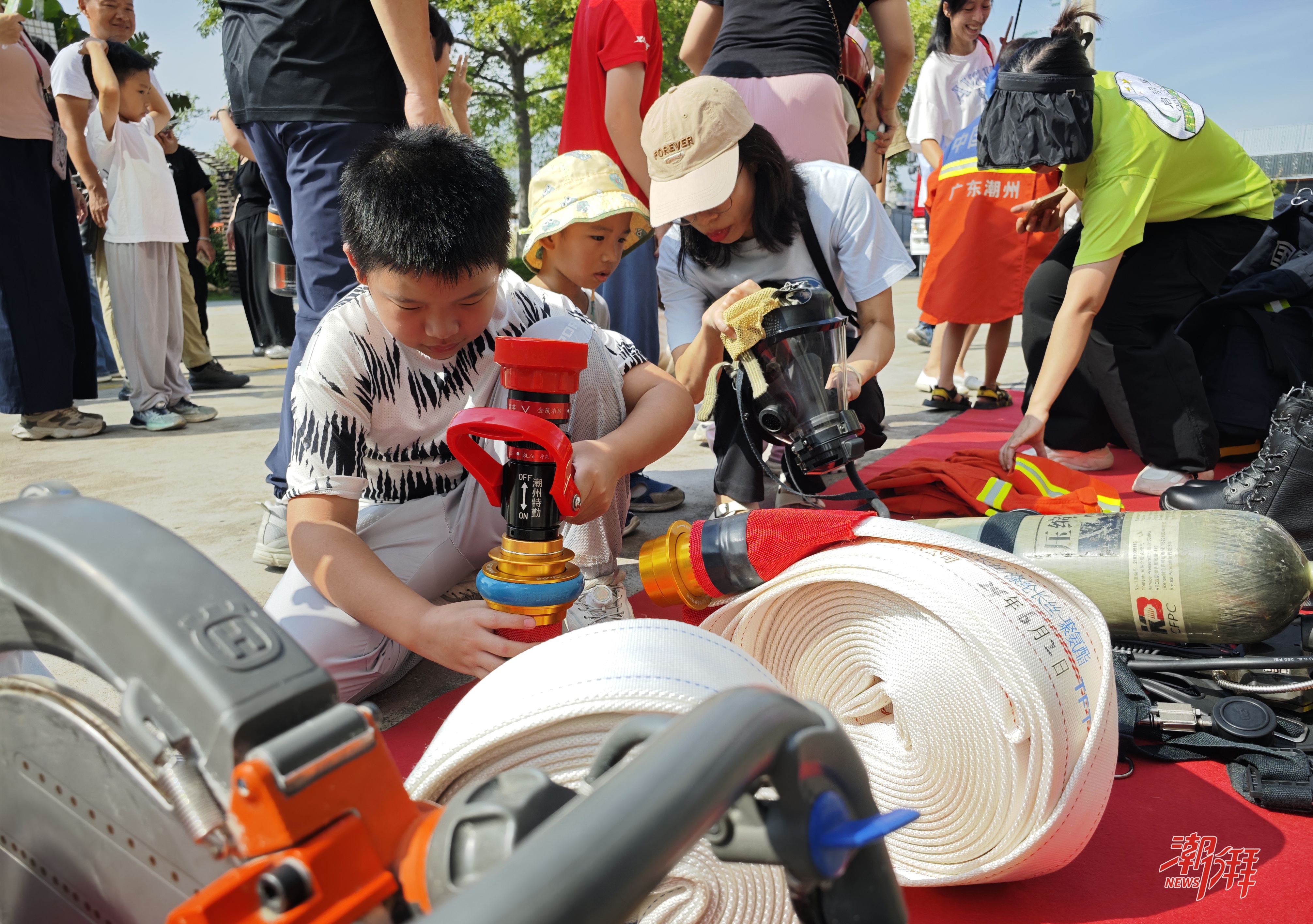 近日,潮州市消防救援支隊興工南路特勤站舉行開放親子體驗日活動,40組家庭走進消防站,通過沉浸式互動體驗,零距離了解消防員的工作與生活,學習消防安全知識。