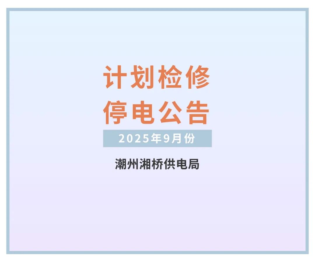 因供電設備建設及檢修需要,由潮州湘橋供電局供電的下列10kV線路(配變臺區(qū))計劃于2025年9月2日至9月26日停電,現(xiàn)將停電線路(臺區(qū))、停電時間和主要停電范圍公告如下: