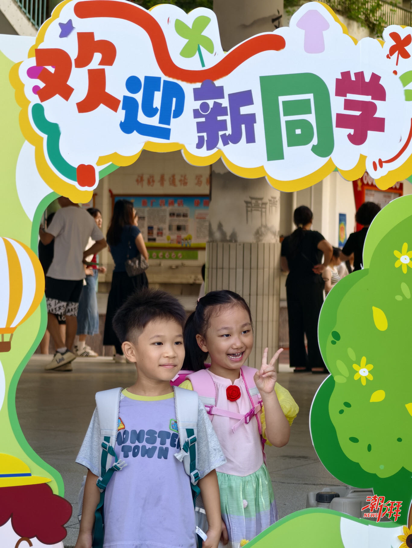 湘橋區城南小學的校門口,高年級的哥哥姐姐主動牽起一年級新生的手。新生背著小書包,好奇地打量著周圍。在哥哥姐姐的帶領下,新生們排著小隊伍,一步一步走進教學樓,身后是家長們欣慰的目光。“今天特別開心!以后要認真聽講,和同學好好相處,還要爭取加入少先隊,戴上紅領巾!”一年級的程奕浩興奮地握拳。