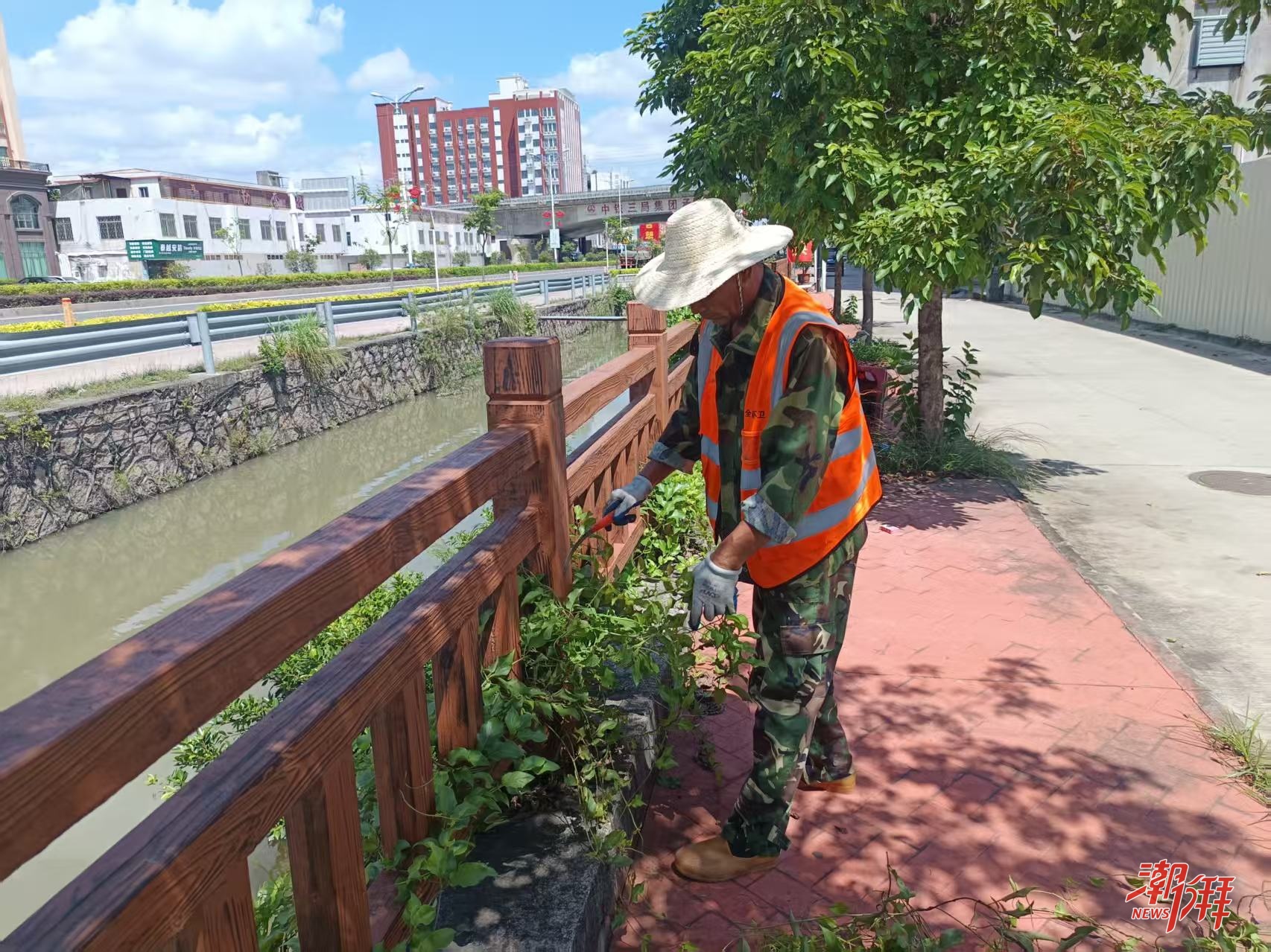 環(huán)衛(wèi)工人在清理雜草。