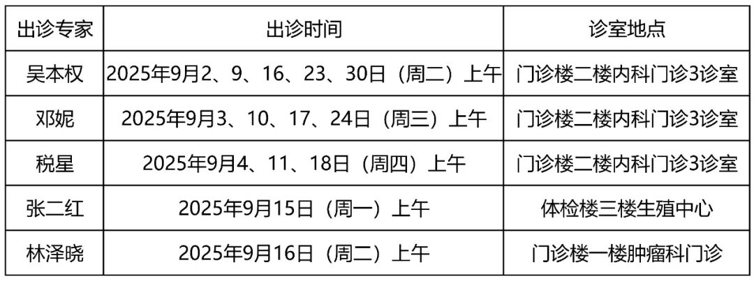 中山三院常駐專家9月份在我院坐診信息!有需要的市民朋友們約起來!