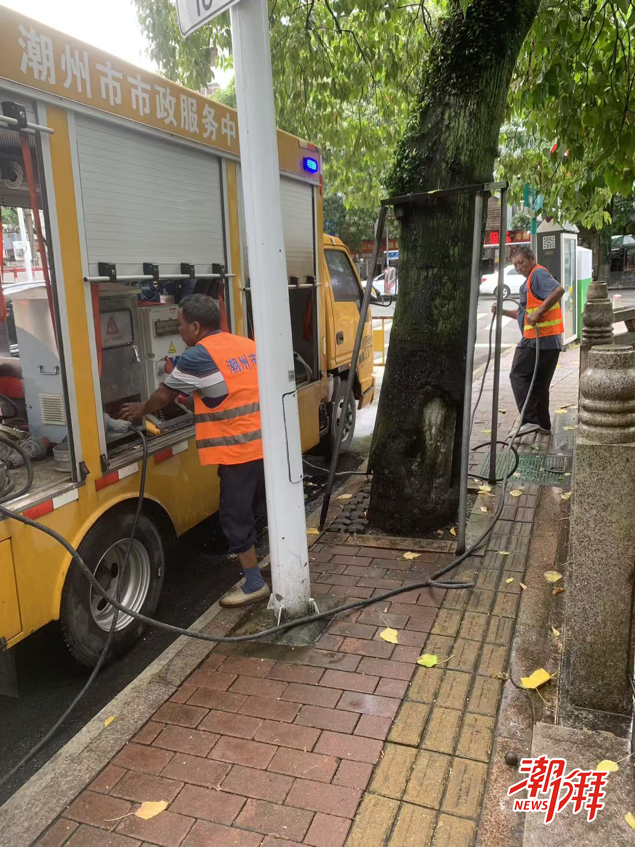 位于潮州大道與銀槐西路交叉口的應(yīng)急保障車輛。